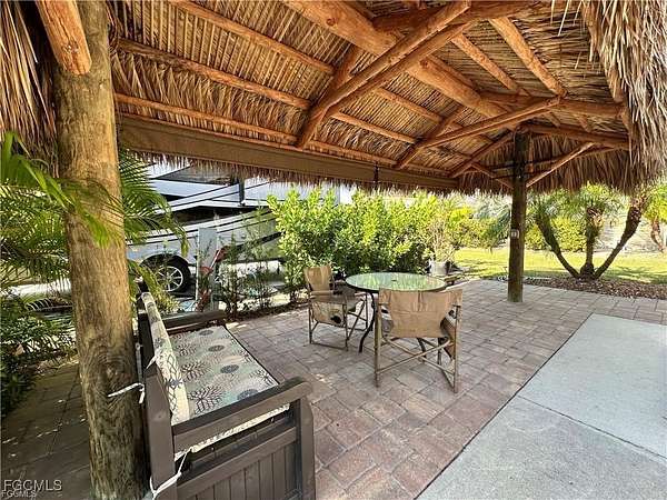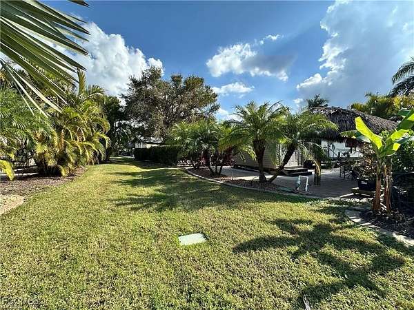 Welcome to your private south-facing concrete/paver lot. Lot 405 is a wonderful private setting with lush landscaping and built-in irrigation. You'll appreciate the sounds of birds coming from the memorial garden on the right side of this lot, which provides, along with extra privacy, a tropical atmosphere as you sit beneath this gorgeous 10x5 Tikki at the back of the lot. This property provides everything you need for peace of mind, including water/sewer, high-speed internet, and over 70 cable television channels. This 90x35 lot comes with a finished Amazon 22x12 shed, including a half bath. We hope you can make this lot your dream property as you enjoy your own slice of sunny southwest Florida.