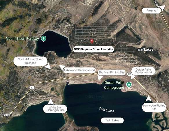 From Leadville, take US-24 to CR-10, towards Twin Lakes. Continue approx 2.5miles on CR-10 as it becomes Cedar Dr. Left onto Quartz Dr. Right on Sequoia. Lot is approx 1/2mile down, 4th lot past Gold Drive, on the right.