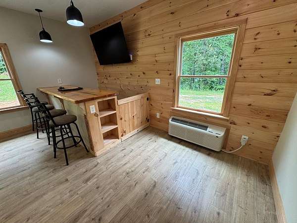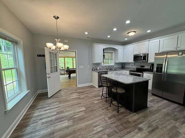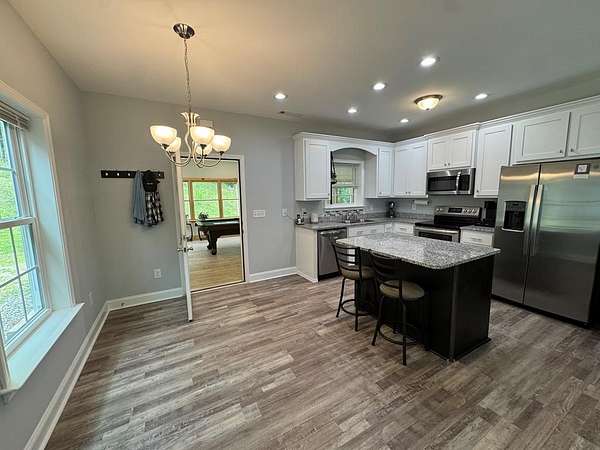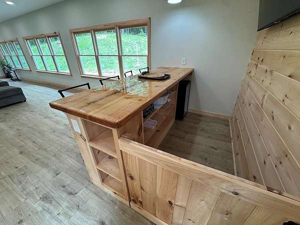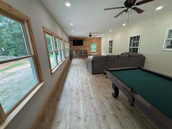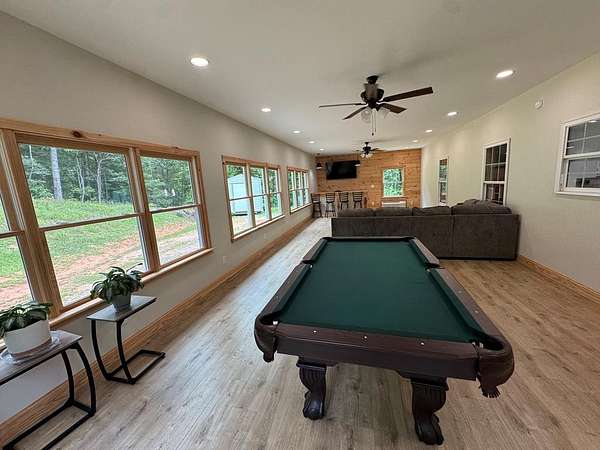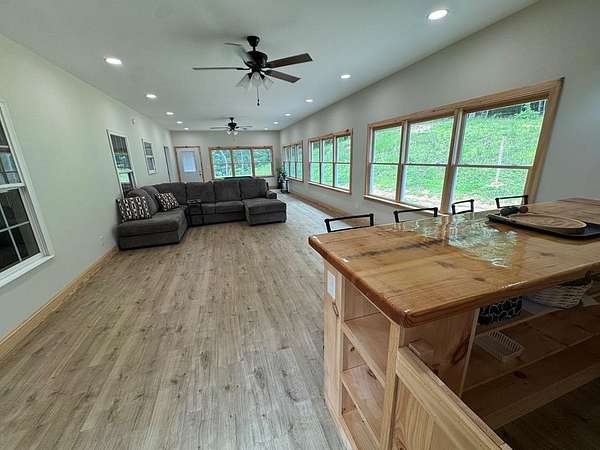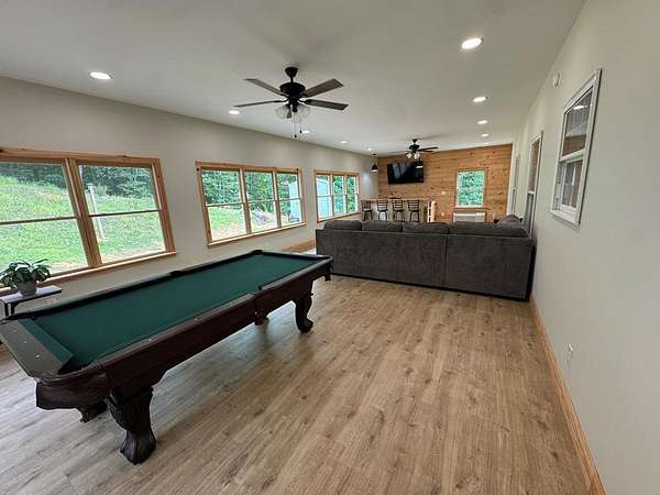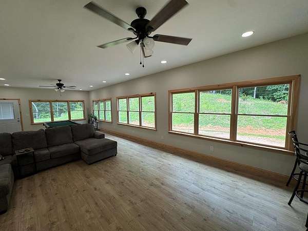 Almost New Home close to Lake Hiwassee sitting on approximately 9.43 beautiful wooded acres that join USFS. This 3 bedroom 2 bath ranch home was built in 2022 with vinyl siding to help on maintenance, aluminum seamless gutters, double pane windows and has a beautiful yard. 2 car deatched metal carport with workshop/garage area and a seperate shed. The inside boasts custom painted cabinets, nice island and granite countertops. Luxury vinyl flooring, roman arch top doors, heat pump and a 16x42 bonus room with pool table and wet bar. This home is move in ready. There are some furnishings that will be conveyed with this home such as beds, dishes, tv's, sectional sofa, pool table and other items. Appliances included are Range, Refrigerator, Dishwasher, Microwave, Washer, Dryer and a small Freezer in the shed. This is an ABSOLUTE must see home. Priced at $389,900.00