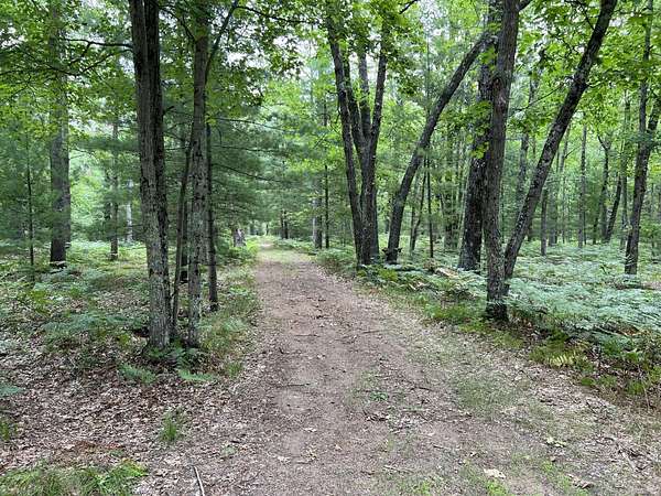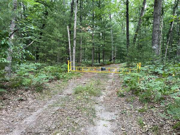 10 1/2 Mile West to Bass Lake Road then South to 7 Mile Road, continue West on 7 Mile Road 8/10 of a Mile to yellow gate on North. Follow through gate North at split turn left to cabin.