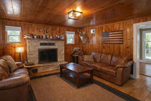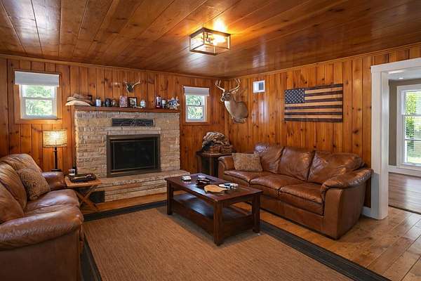 Move-in ready and fully furnished! This charming 2-bedroom, 1-bath home offers 1,008 sq ft of comfortable living with two spacious living rooms and a 2-car attached garage. Nestled on 5 private acres, the property provides a peaceful, secluded setting with state land directly across the road. Outdoor enthusiasts will love the nearby ORV and snowmobile trails and close proximity to the boat launch. Inside, enjoy extensive updates including all new electrical, updated bathroom and kitchen, new cabinets, flooring, appliances (including washer and dryer), and window treatments. A perfect year-round home, getaway, or investment opportunity!