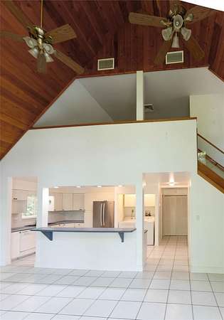 - Cathedral Ceiling(s), Ceiling Fans(s), High Ceilings, Open Floorplan, Primary Bedroom Upstairs, Thermostat, Vaulted Ceiling(s), Walk-In Closet(s)