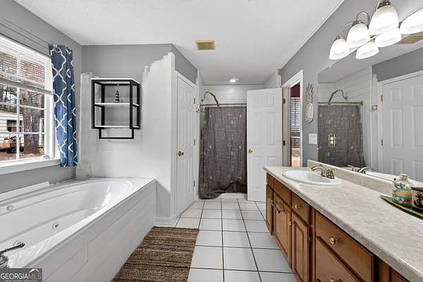 - Double Vanity, High Ceilings, Master On Main Level, Separate Shower, Soaking Tub, Tile Bath, Vaulted Ceiling(s)