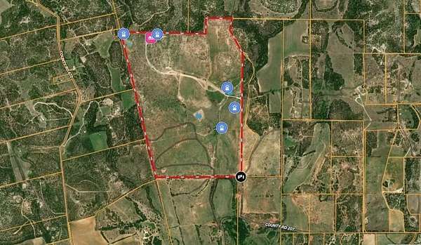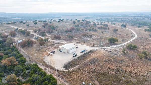 Spanning 403 acres of rolling terrain, this turn-key ranch offers some of the most scenic views in Taylor County and is well suited for equestrian or cattle operations. The property features strong perimeter fencing, improved caliche roads, multiple stock tanks, and four water wells providing reliable water throughout and one capped well. Mature oak and pecan trees enhance the landscape and create a classic ranch setting. A barndo cabin allows for immediate use, while multiple homesites are available, including a premier site at the highest elevation with utilities already in place ideal for building a dream home. Located in the highly regarded Jim Ned School District, this exceptional property offers privacy, productivity, and room to enjoy wide-open spaces surrounded by livestock and natural beauty.