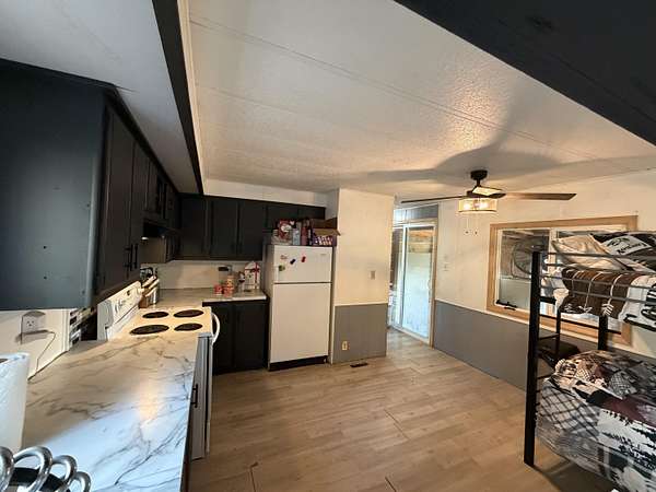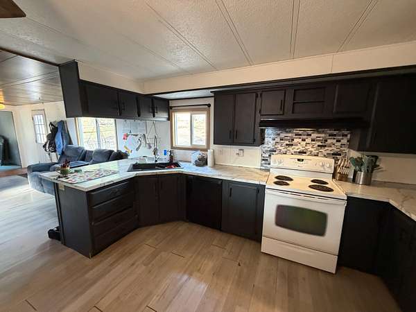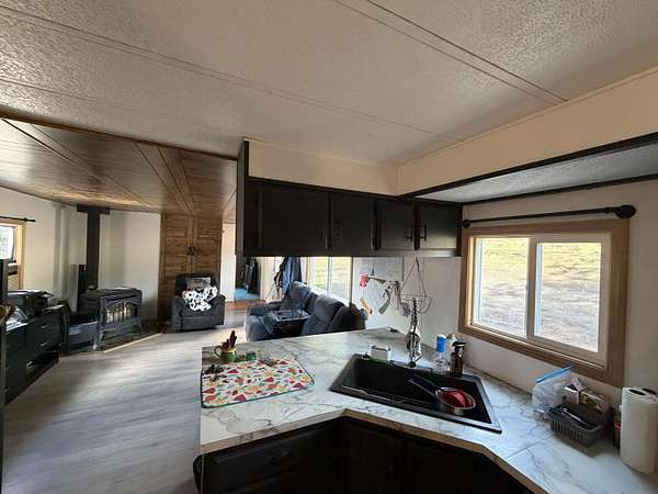 Est $477/moGreat opportunity to live just outside of town in this newly remodeled single wide that sits on 20 leased acres. Updates include new flooring, vinyl windows, doors, plumbing, electrical, pellet stove and large addition added on the back for extra space and storage. Perfect place for all types of animals with a round pen that has stadium lights, covered area for horses, chicken coop, pig pen and 50 amp RV hookups. Land payment is 400 a month.