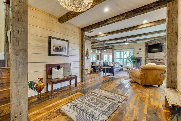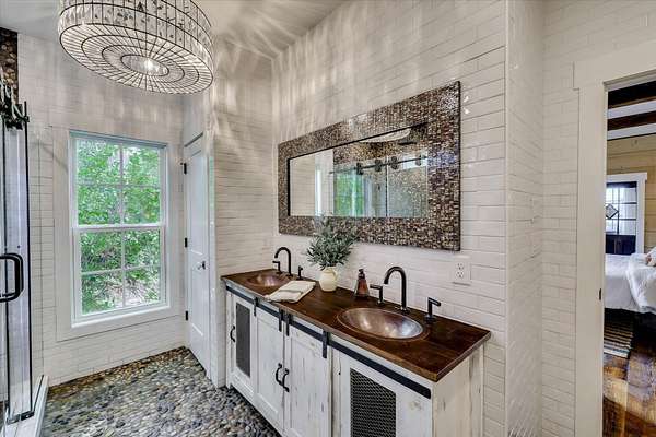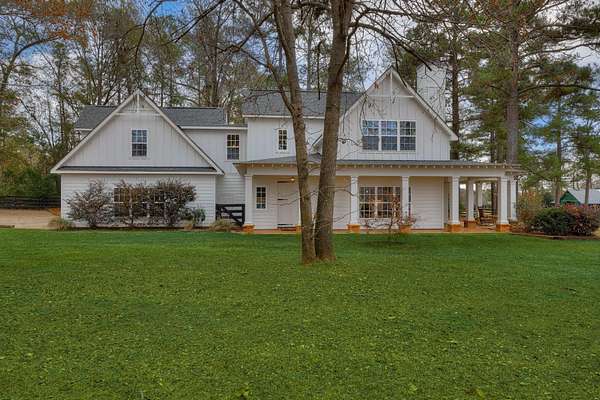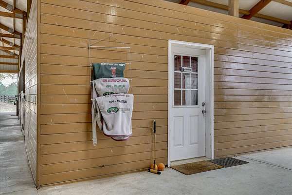Horse lover's dream farm in New Bridge Polo and Country Club where refined living meets world-class equestrian sport. A completely private 13.26 acre estate with direct New Bridge Road gated driveway access, and house, barn, and paddock spaces shaded by numerous old growth trees. Featuring an approximately 3400 square foot 4 bedroom, 3 1/2 bath residence with too many custom features to list - including reclaimed barnwood beams floors and ceilings; custom kitchen cabinets, Northstar Appliances, and zinc counter tops; antique farm doors; wrap around porches and an asado area with views of polo fields 4 and 5 ideal for indoor/outdoor living and entertaining. The first floor primary is appointed with a custom river rock spa. The open floor plan and numerous french doors allow for seamless living complemented by a second floor entertainment space and bedroom with a separate entrance. Your dogs will also enjoy dog door access to a double-fenced 1 acre yard as well as a smaller interior-fenced dog run keeping them safe and secure. Walk through your garden gate to your barn where your horses will live in luxury in your fifteen 12' X 12' stalls complete with mats and fans. Soaring ceilings, skylights, 16-foot aisles, multiple heated tack rooms, oversized feed room, multi-room lounge with full bath and kitchenette, two hot/cold wash stalls, and your own 200x300 multi-discipline irrigated riding ring currently featuring a full jump course and exercise track makes this horse facility beyond compare. Includes an additional matching 12' X 20' metal storage shed perfect for hay or farm equipment. Located in the private and desirable Phase III of New Bridge Polo and Country Club, it is just a short golf cart ride or hack away from New Bridge amenities including five polo fields, a clubhouse with pool and seasonal restaurant, lit clay tennis court, polo arena, and irrigated GGT footing jump and dressage arenas. Come see this exquisite private horse property in the finest equestrian gated community in Aiken.