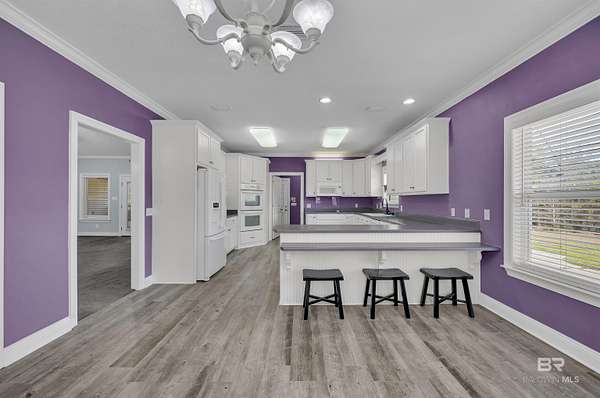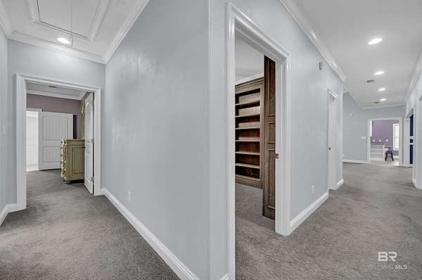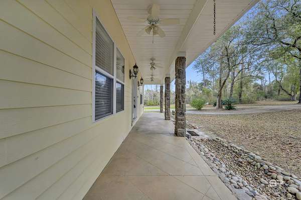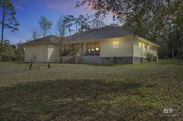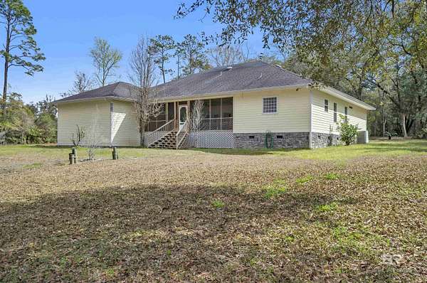 This spacious custom-built home is situated on approximately 6 acres that is not visible from the road. Located in the Magnolia Springs community. Just minutes to Magnolia River. The mostly wooded acreage offers exceptional privacy! The interior features crown molding, bull-nosed corners, fully encased windows, and high ceilings throughout. The floor plan includes a fourth bedroom that has a built-in bookcase, making it an ideal flex space. The home is equipped with two hot water heaters, gutters, a sprinkler system, and underground electrical. There is a long circular concrete driveway surrounded by beautiful oaks. The garage is oversized with a utility sink and is side entry. A wonderful amenity includes a covered, screened-in back porch measuring approximately 22 x 32! Additionally, the property includes a 30 x 60 metal building with concrete floors and both 110 and 220-volt electrical service. This is a quality-built home! Very Private! First time on market. Buyer to verify all information during due diligence.