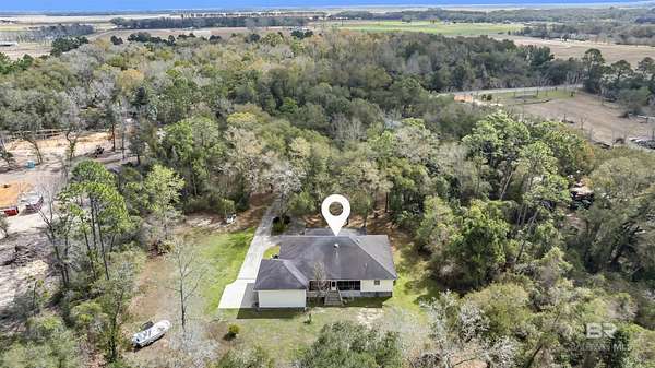 From Hwy 98 in Magnolia Springs, head South on County Road 49 aka Magnolia Springs Hwy. Pass RV Park and look for sign on right. You cannot see the house from the road.