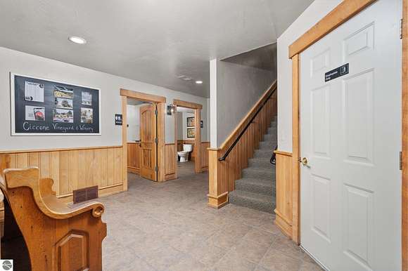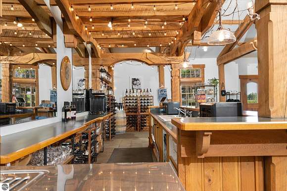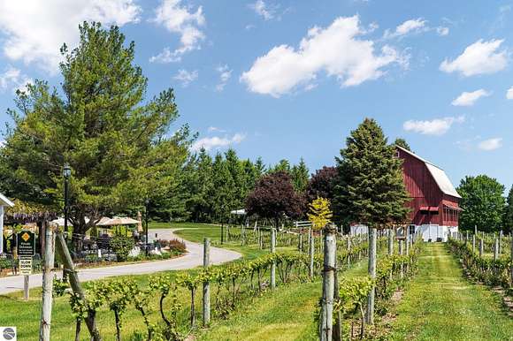 Build your legacy in Leelanau County with this once-in-a-lifetime opportunity. Ciccone Vineyard and Winery is a sprawling estate with a strong brand in an ideal location, and an incredibly picturesque property with unobstructed views of Grand Traverse Bay from many vantage points. This trophy opportunity is completely turn-key with a successful wine and event business, as well as a Winemaker's home or bed and breakfast accommodations. Ciccone's award-winning wines are made exclusively from estate-grown grapes - produced and bottled on-site. Ciccone has a superb staff, a huge and growing wine club following, and the historic barn and event spaces are well-booked throughout the year. Built in 1990, the two story Winemaker's home has gorgeous views in all directions - with 5 bedrooms, 4.5 bathrooms, a large open main-level floor plan, immaculate grounds, and lots of outdoor entertainment spaces, the home has multiple potential uses including bed and breakfast, event guest space, and more. The kitchen has many updates including newer cabinets and counters, and the living areas all point to the views of the bay or the adjacent sprawling vineyard. The home is freshly painted, and has adequate storage areas as well as an attached three car garage. The Winemaker's home is also on its own 2 acre lot, which could be beneficial for flexible uses - or, it's a lovely primary home and perfectly positioned to oversee the entire Ciccone operation. In addition to the existing operation and lovely home, there is expansion potential as well. Plans for an onsite cafe, new production building, expanded vineyard potential, and event pavilion are all in hand and can be shared with the next steward of the property. The property consists of multiple parcels, which could be a flexible benefit as well. Sip award-winning wine from the back patio or the historic barn, overlooking sprawling vineyards, and a bay of blue. This Leelanau experience is definitely one to see in order to appreciate!