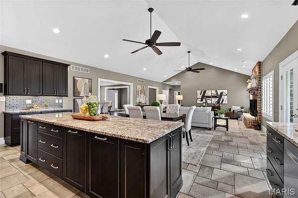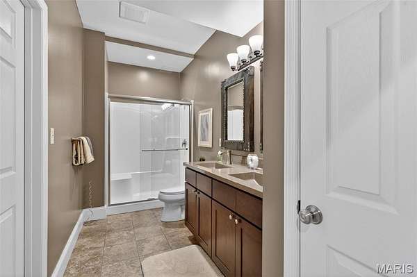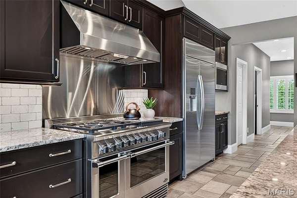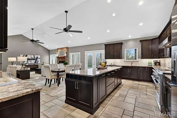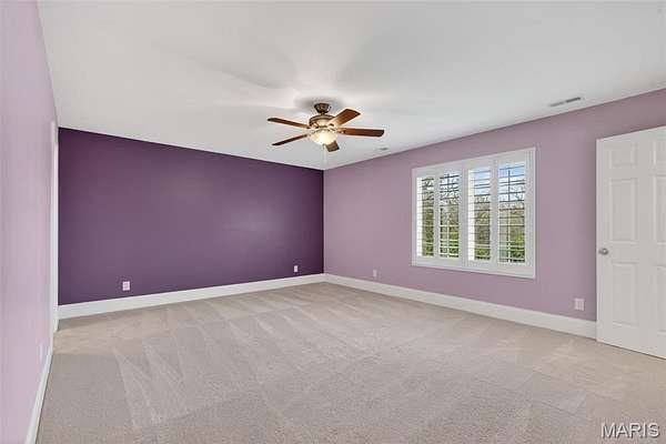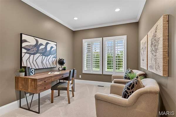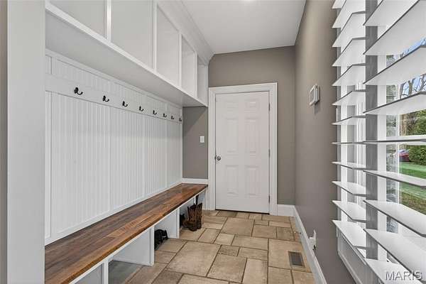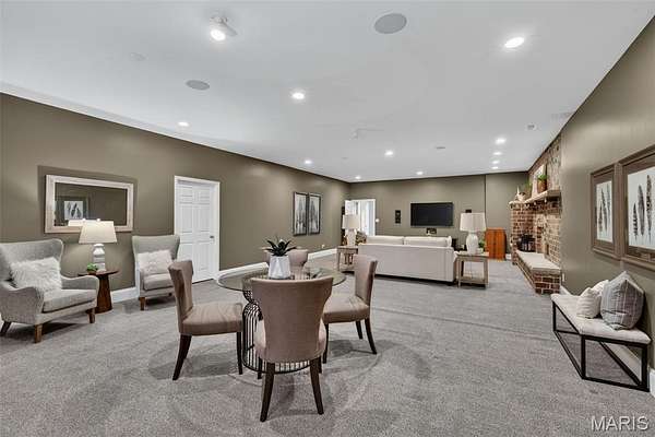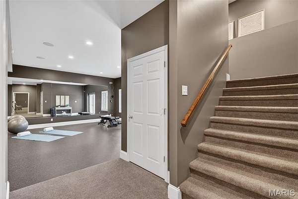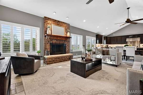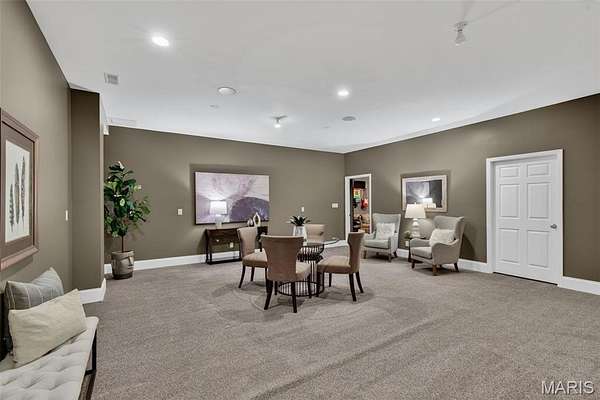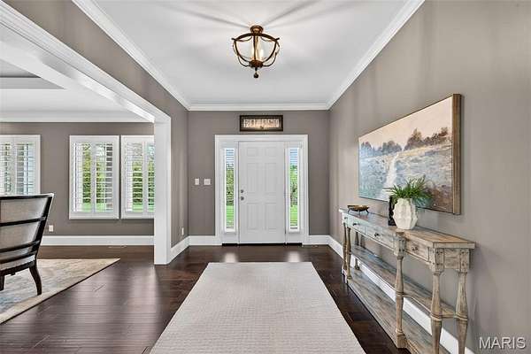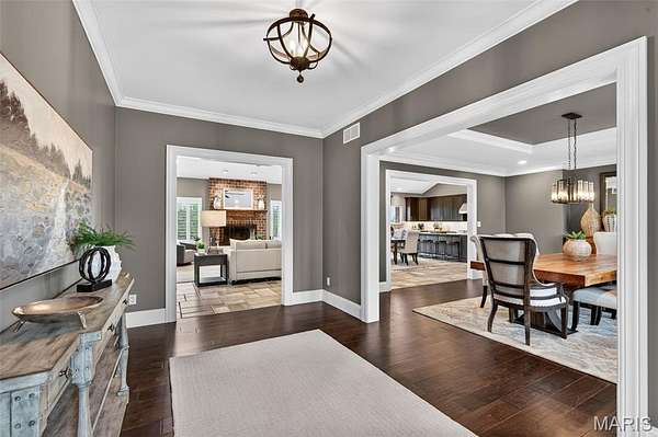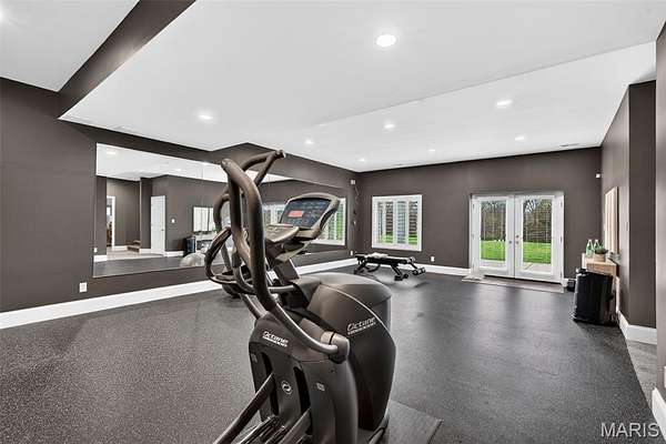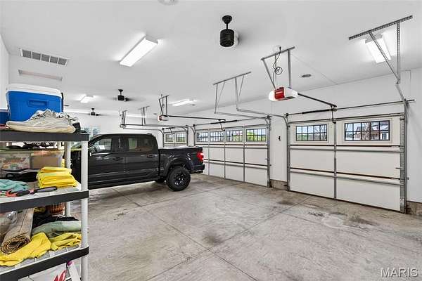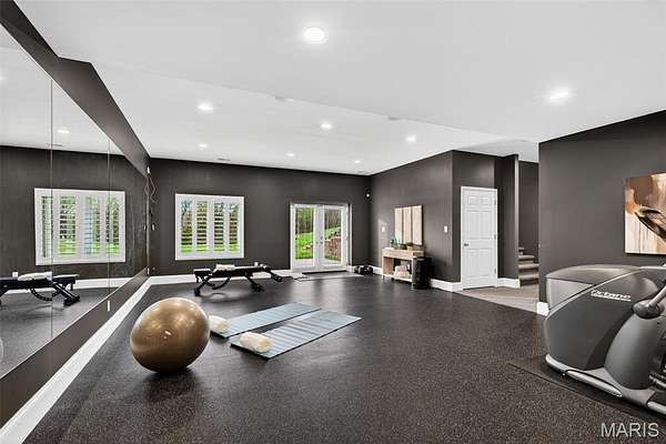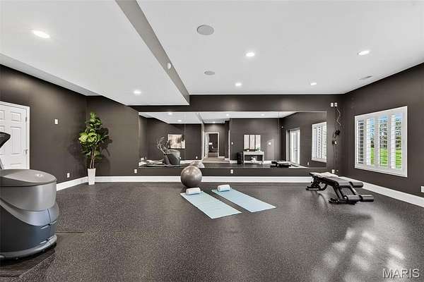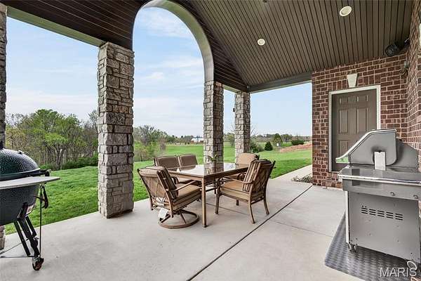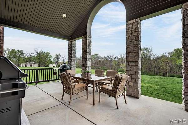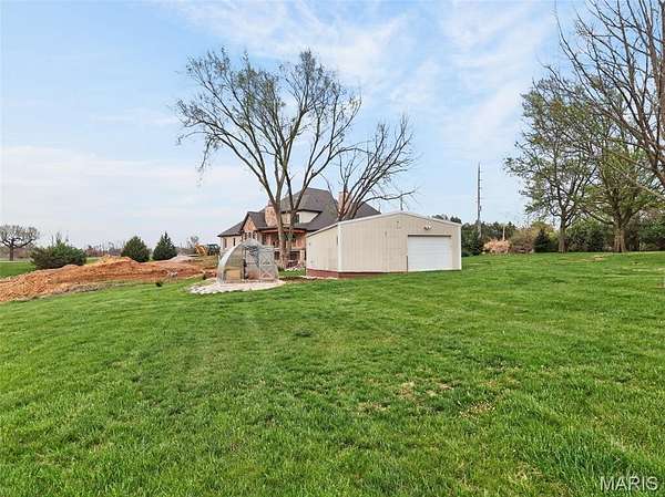 The kitchen is a true focal point, centered around a 10-foot island and framed by vaulted ceilings that draw in natural light. Custom cabinetry pairs with granite countertops, along with a 48-inch DCS gas range and stainless hood vent. A 48-inch built-in smart side-by-side refrigerator completes the space. The glass door leads out to the covered patio overlooking the acreage and is the best seat on the property.The walk-in pantry offers custom cabinetry and is complemented by a separate goods and supplies closet. Down the hall, the mudroom features a custom-built hall tree and additional storage, creating a clean drop zone. The gorgeous main level primary suite is set apart to provide privacy. A gas fireplace creates a refined focal point, complemented by custom casing, mantle, shelving, and tile work. Large windows frame the acreage and bring in natural light, while custom plantation shutters provide a timeless finish. The suite also features two custom closet systems. The main floor laundry room includes dual hook-ups. The upper level includes three generously sized bedrooms, including a 17x14 suite with its own private bath, ideal for guests or multi-generational living. The finished lower level is a true extension of the home with 10-foot ceilings. Natural light pours in through the walk-out, highlighting a home gym with specialized flooring and mirrored walls. The recreation space features a full masonry fireplace, with plumbing in place for a future bar. Behind the walls, the home’s construction and mechanical systems are equally impressive, including 8-inch poured concrete foundation walls and full insulation in both the basement and garage. The 31-foot deep by 46-foot wide four-car garage is heated and includes a 1-foot stem wall for full wash-down capability, its own HVAC system, and a direct half-bath that accessible from both the outside or the garage. Additional upgrades include zoned high-efficiency HVAC, two tankless water heaters, and a HALO whole-house water filtration system. There is a 24x40 outbuilding/shed, and a 26x8 greenhouse, creating flexibility for hobbies, equipment, or recreation. The setting offers a rare balance of privacy and convenience, with peaceful acreage just minutes from Tesson Ferry’s shopping, dining, and everyday amenities, along with quick access to major highways. It is a combination that is increasingly difficult to find and even harder to replace. Tucked away, yet close to everything you need. Experience the home in person at the grand open house this Thursday from 4:30 to 6:30, or contact us to arrange a private showing.