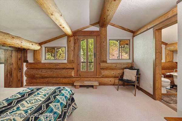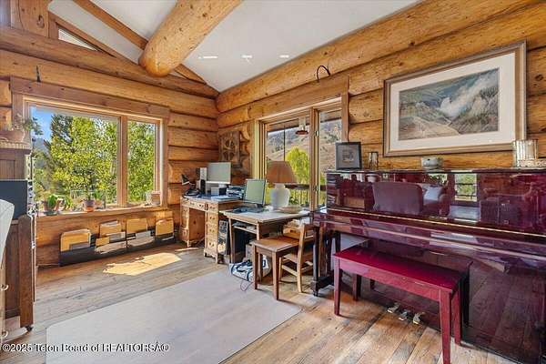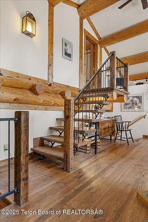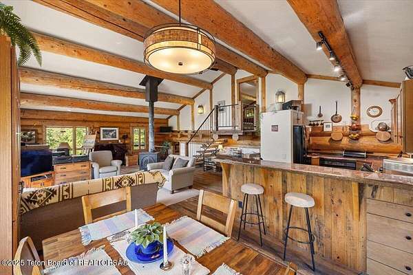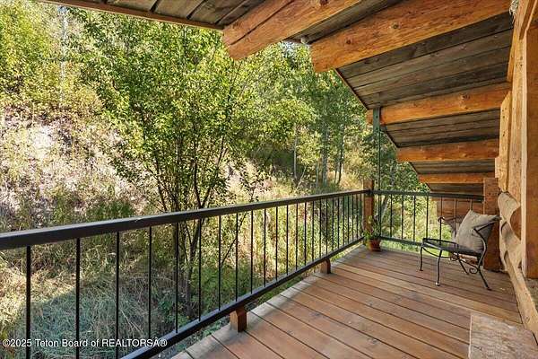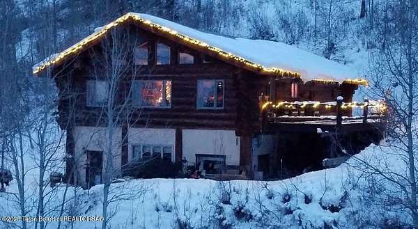 Tucked away in a private Aspen grove, this special property is more than a home - it's a sanctuary. Crossing the custom bridge over Deer Creek feels like stepping into your own secluded retreat, where nature greets you at every turn. Deer, foxes, owls and grouse are regular visitors, while over 80 species of birds and butterflies animate the landscape, a reminder that you're living in one of the West's most vibrant ecosystems. The custom crafted log home, built with the full-scribe Swedish Cope Method construction, is both a work of art and an heirloom designed to last generations. Inside, every detail tells a story, from reclaimed white and red oak floors and antique restored doors, to custom blacksmith stairwork and the warmth of a Dutch West wood stove. Expansive windows invite in natural light, while a spacious deck and covered balconies open your living space to mountain air and tranquil views. Life here flows seamlessly with the seasons. As autumn settles in, mountain air rustles through the golden aspens, signaling cozy evenings by the fire. When winter blankets the landscape in snow, the chalet-style design and recent log restorations create a warm, welcoming retreatperfect for watching the snowfall from the comfort of home. Whether you're fly fishing the nearby Snake River, utilizing the private neighborhood access to the National Forest, or simply enjoying coffee on the deck while listening to the pleasant sounds of Deer Creek and watching the elk migrate on the nearby mountainside, this special property connects everyday living with the beauty of the outdoors. For those seeking not just a house but a way of life - rooted in craftsmanship, privacy, and nature - Deer Creek Retreat offers the rare opportunity to come home to the mountains in their truest form.