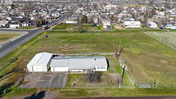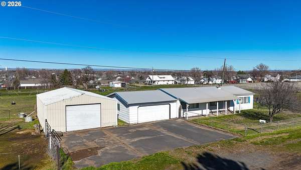 Welcome to a little slice of Eastern Oregon country living at 1035 E Tamarack Ave in Hermiston. Set on 1.77 acres with water rights through the Hermiston Irrigation District, this property offers space and flexibility that's getting harder to find. The home features 3 bedrooms that have been updated and 2 full bathrooms with an open layout in the main living space. The attached garage provides convenient storage or parking while the large shop gives you plenty of space for projects, storage, or hobbies that need a little elbow room. Step outside and you'll notice the open feel right away- the kind of setting that invites a garden, a few animals, or just some breathing room between you and the neighbors. With a private well and septic system in place, the property is set up for affordable, self-sufficient living. The property sits just across the street from the city limit line, meaning you get the benefit of cheaper property taxes while benefiting from all the amenities of living in town. The property is also very short walking distance to both Highland Hills Elementary and Sandstone Middle School. It's a nice balance of rural space without giving up everyday convenience. If you've been looking for a straightforward property with land, water rights, and room to make it your own, this one is worth a closer look. It's waiting for your fresh vision!