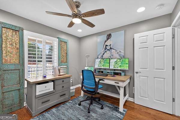 Set on 26 peaceful acres with dual frontage on Payne Creek and the Middle Fork Broad River, this modern farmhouse offers a rare blend of privacy, usable land, and thoughtfully designed living space. The main dwelling features 1,960 sq ft and includes 3 bedrooms, 3 full baths, and an open kitchen and living area with beautiful pastoral scenery along with a clear line of sight to the gorgeous custom pool. The kitchen showcases a substantial, upscale island offering generous storage, a built-in beverage fridge, and ample seating that makes it ideal for gathering and everyday living. Upstairs, a spacious flex living area includes a large closet and full bathroom, making it ideal for a guest retreat, office, studio, or additional living space. The home also includes a sealed and encapsulated crawl space with a commercial-grade dehumidifier. A detached three-car garage offers excellent parking and storage with its 39' x 23' footprint, plus an additional 350 sq ft conditioned flex room behind it that is perfect for a workshop, hobby space, studio, or extra storage as needed. Above the garage is 750 sq ft of finished, conditioned flex space, ideal for a gym, media room, recreation area, or workspace. Outdoor living is exceptional with a 16' x 32' heated gunite pool (3' to 8' depth), a 7' x 12' tanning ledge, and a 7' x 7' spa, all heated by propane and equipped with an automatic chlorinator. The acreage includes open pasture and wooded river frontage, suitable for equestrian use, farming, recreation, or simply enjoying the quiet setting. With over 1,800 feet of combined creek and river frontage, close proximity to Interstate 85 for an easy commute, and quick access to downtown Carnesville, this property offers the serenity of a country retreat along with everyday comfort and convenience. Some exterior images contain AI-enhanced green grass to illustrate seasonal appearance.