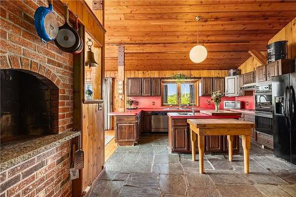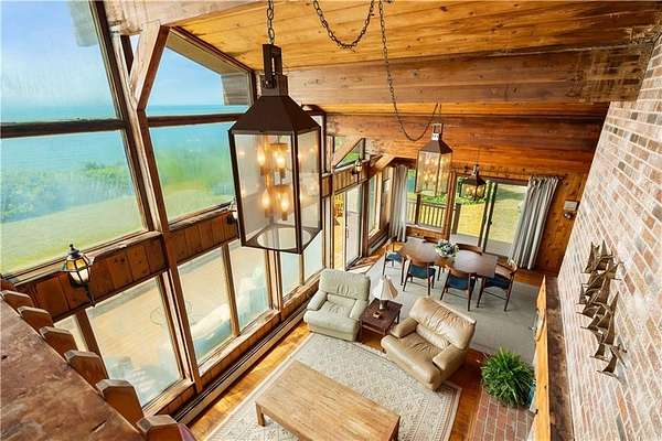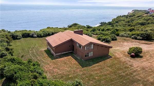 This waterfront property offers an increasingly rare opportunity to own along Block Island's striking southern shoreline. With expansive views of the Atlantic and direct proximity to the Mohegan Bluffs and Vail Beach, the setting is both breathtaking and peaceful. The 2.26-acre lot is home to a residence that has been cherished by the same family who originally designed and built it, now ready to be passed on to new owners. The home is being sold as-is and will require renovation, offering a chance to restore or completely reimagine a classic Island escape. Inside, a dramatic floor-to-ceiling brick fireplace serves as the heart of the main living area and continues through to a second fireplace in the lower level. A built-in brick cooking fireplace adds rustic charm to the kitchen, offering a rare focal point for gathering and entertaining. Expansive windows, vaulted ceilings, and natural materials create an immediate connection to the landscape, while generous outdoor space frames the ever-changing ocean beyond. A full home inspection is available upon request, providing helpful insight for those ready to bring new life to this truly special offering. Whether you're seeking a personal retreat or an investment in one of Block Island's most desirable coastal locations, this is a rare opportunity to create something unforgettable.