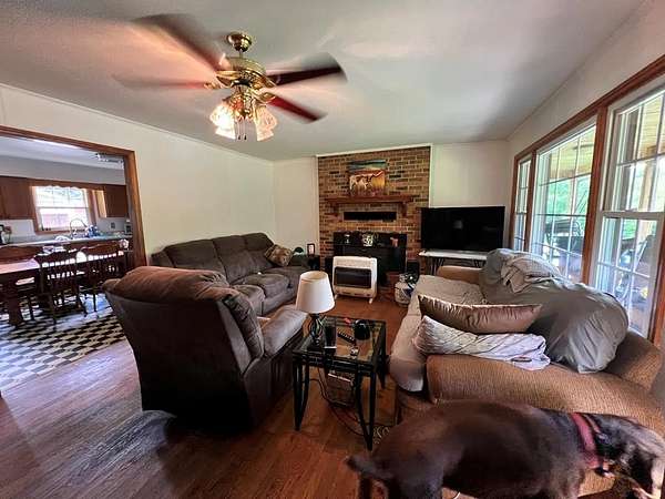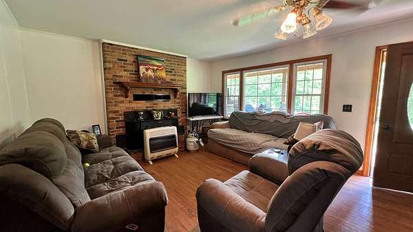 This charming Brick Ranch offers 4 bedrooms, 2 baths, and sits peacefully on a mini farm with 3 fully fenced tracts-ready for horses, goats, or rescue of your choice. There are 2 outbuildings to be used for your animals' feed or garden equipment, and tools. With over 1,800 sq ft of living space, you have a large living room with a fireplace and a wood-burning insert for those cool seasons. The large kitchen will hold the farmhouse table you've been wanting. The additional bonus room could easily be a den, rec room, or school room with 2 exterior doors. This home offers space for the entire family, both inside and out. If you're craving wide open skies, quiet surroundings, and land with purpose.
