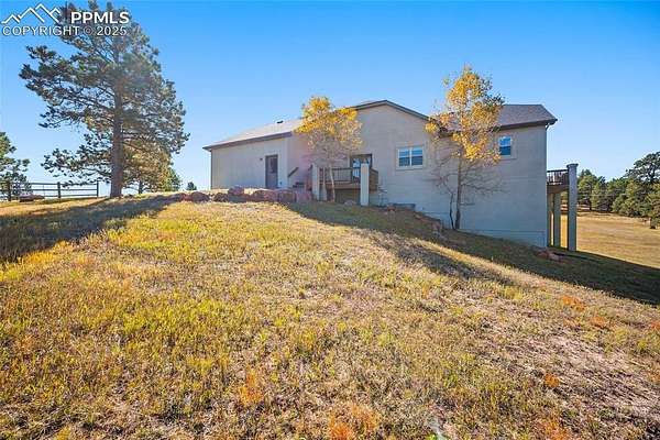 Welcome to 10350 Hodgen Road - a rare live, work, and play estate on 14.64 serene acres in the coveted Black Forest area. This 4-bedroom, 3-bath ranch-style home offers over 3,700 finished square feet of inviting living space with vaulted ceilings, an open-concept main level, and panoramic views from every angle. The walk-out lower level adds two bedrooms, a full bath, a wet bar, and flexible entertaining space that opens to the outdoors. Perfect for entrepreneurs, hobbyists, or those seeking versatile space, this property features an 8,000+ square foot commercial-grade heated shop with oversized doors, power, and an enclosed office-ideal for a business, car collection, or creative workspace. A secondary ~1,100 square foot storage building provides additional room for equipment, tools, or recreational gear. Enjoy peaceful privacy with meadows, mature trees, wrap-around decks, and stunning Front Range views-all while being just minutes from shopping, schools, and city conveniences. Experience true Colorado living-where home, work, and recreation come together in one extraordinary property.