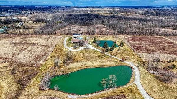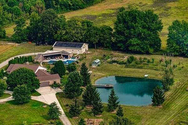 Welcome home to your own private retreat! Set on 14.43 secluded acres comprised of four parcels (including one buildable 4.99 acre homesite), this stunning one-story brick residence offers the rare opportunity to truly live, play, and unwind at home. Step inside to a thoughtfully refreshed interior featuring many updates throughout, including granite and quartz kitchen countertops and newer appliances. The owner's suite is a true sanctuary with a soaring volume ceiling, cozy wood-burning fireplace, an updated spa-like bath with heated floors, and a custom walk-in closet. Designed for recreation and relaxation, the grounds are nothing short of extraordinary. Enjoy two picturesque ponds- one complete with a swimming/fishing dock - along with a 40,000-gallon in-ground pool accompanied by a pool house featuring a bath/changing room and covered bar area, ideal for entertaining. Additional highlights include an 1,800 sq ft outbuilding with slab, electric, and partial heat; solar panels providing 6-8 months of no electric bills; a Tesla battery wall in the lower level plus garage charging; a heated greenhouse and garden space; and a finished walk-out lower level with a fourth full bath, bringing total finished living space to over 4,900 square feet. This retreat is a rare blend of privacy, luxury, sustainability, and lifestyle - this is more than a home, it's an experience.