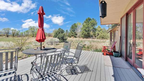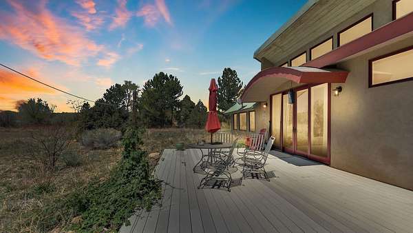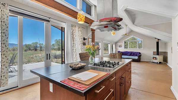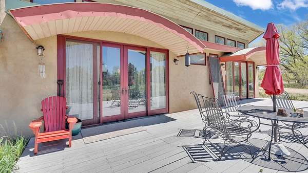 A Perfect Sanctuary in the El Prado Valley ~ Nestled within the tranquil El Prado valley you will find this remarkable contemporary Southwest-style home sitting on nearly 2 irrigated acres with invaluable acequia surface water rights. Surrounded by mature trees and completely enclosed by a private fence, this secure haven offers some of the most breathtaking sunset views to be enjoyed from the backyard deck. The home itself is an architectural gem that is filled with natural light that ensures efficient warmth during the colder months, accompanied by an efficient wood burning stove in the corner of the living room which keeps the whole home cozy. Additionally, the home is pre-plumbed for hot water radiant heat if the new owner desires to upgrade. The fully loaded kitchen is a culinary dream, equipped with stainless steel appliances, ready for you to create and share delicious memories. The unique design features a sturdy metal roof with an appropriate pitch and overhang to deter rain and snow. Outside, the expansive yard is a rare find in El Prado, offering endless possibilities for expansion, gardening, and farming. Imagine cultivating your own bountiful garden or simply enjoying the vast open space for children to play freely, and pets to roam. This property presents the perfect blend of thoughtfully designed square footage and expansive land in the heart of coveted El Prado with easy access to both Downtown Taos, and the Taos Ski Valley or Rio Grande River for fun. Don't miss this extraordinary chance to make this unique residence your own. Don't miss the opportunity to own the perfect blend of comfortable living space and expansive land in the highly coveted El Prado neighborhood.