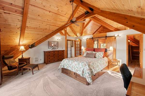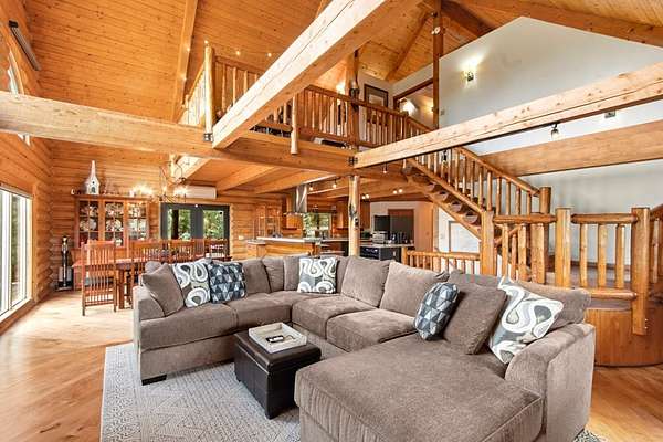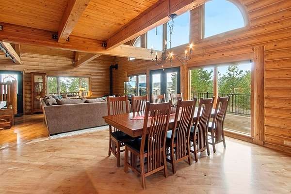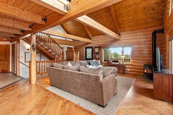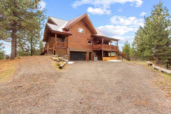 STUNNING MOUNTAIN AND VALLEY VIEWS - from this beautifully crafted 3-level log home offering 3,160 sq ft of inviting living space. Featuring 3 bedrooms / 4 baths, including 2 primary suites, this property is designed for comfort and flexibility. Vaulted T&G ceiling and Hickory wood floors in the main living area and other gathering areas provide room to spread out, relax or entertain. The kitchen is well-equipped with a 5-burner gas range and a separate electric oven. Enjoy outdoor living with a large front deck, two spacious side decks, and a private deck off the upstairs primary suite-all perfect for taking in the magnificent scenery. This special property is situated on 2.10 acres with fire pit, horseshoe pit, RV hookup, a 12x20 powered shop, shed and ample space for all your toys. Most furnishings are included for a turnkey opportunity. This property is the perfect base camp to begin all your Valley county recreation opportunities.