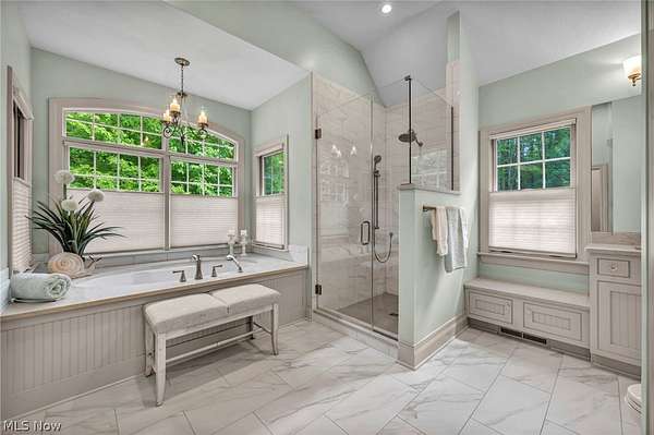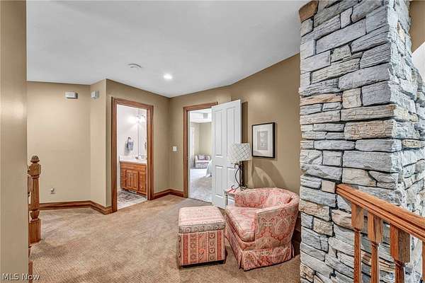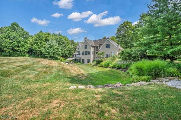 Private 30-Acre Outdoor Retreat Near Downtown Chardon. Tucked at the end of a private drive, this custom French Country estate offers an exceptional blend of elegance, privacy, and outdoor adventure. Just 3.5 miles from Chardon Square and 10 miles from Route 90, this nearly 30-acre property is a dream for outdoorsmen and nature lovers alike. Explore 21 acres of mature hardwood forest, 5 acres of open pasture, and 3 acres of scenic frontage-ideal for hunting, hiking, or simply enjoying nature's tranquility. Currently enrolled in CAUV for a 50% tax savings, the property combines beauty and practicality. A 900-foot asphalt driveway leads to the stately residence, where timeless architecture meets modern comfort. The main-level owner's suite (2018) offers heated floors, dual walk-in closets, a luxurious microbubbler soaking tub, and walk-in shower. A two-sided wood-burning fireplace connects the kitchen's dining area with the great room, creating a warm, inviting flow. Upstairs, find three spacious bedrooms, including a Jack and Jill bath and a cozy loft workspace. A dedicated home office near the foyer provides quiet productivity, while the finished lower level (2020) includes a full kitchen, full bath, fitness or guest space, and direct access to a stamped-concrete patio perfect for entertaining. The 4-season sunroom and expansive back deck overlook rolling pastures and manicured landscaping. Outdoors, enjoy a 24x40' two-story barn with an unfinished upper level, a 10x16' she-shed, and a 9,000-watt generator for peace of mind. The 350-foot spring-fed well provides pure water without treatment. This property offers rural luxury at its finest-secluded yet sophisticated, peaceful yet practical. A rare opportunity to own a private country estate with every modern convenience and endless opportunity to explore the outdoors.