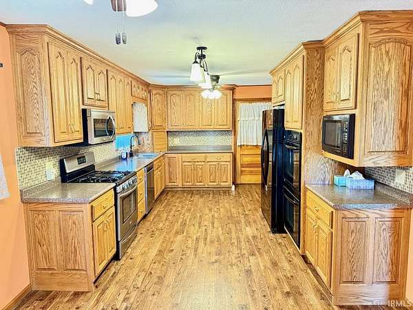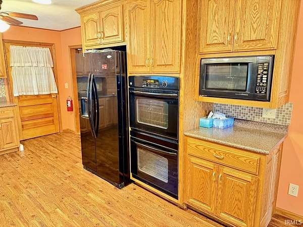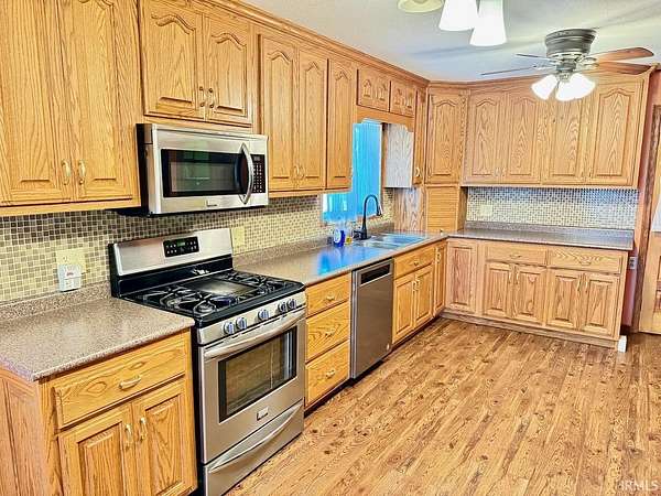 First time on the market in decades, this unique 5.25-acre Pennville property is ready for its next chapter! Offering 2,312 square feet of living space, the home features 3 bedrooms and 1 full bath, plus an additional full bath located in the impressive 3-car attached garage. The kitchen is a standout for any cooking enthusiast, complete with custom cabinetry, updated appliances, three full ovens, and a convection microwave. The main-level bedrooms are generously sized, while the upper level provides flexible space with a combination of family room and additional bedroom area. A truly special feature for hobbyists is the installed miniature train track system—something rarely found and sure to impress. Mechanically, the home has been well maintained, highlighted by a 2-year-old geothermal HVAC system with gas backup (open-loop). Other updates include the kitchen (2014), flooring (2010), well (2001), and various window replacements over the years, along with the washer and dryer (2025). The attached garage is a dream setup with 2x6 construction, excellent insulation, upgraded electrical, two wall heaters, and even a rare bridge crane for serious lifting capability. Additional heating options include baseboard booster units and a gas wall heater in the living room—ideal for backup during power outages. The propane tank is owned. Set on a newly surveyed 5.25-acre parcel (formerly part of a larger 40-acre tract), the property offers space, privacy, and flexibility. The seller would love for the three well-behaved outdoor cats—excellent for natural pest control—to remain with the property. Select upstairs furniture may also stay. Immediate possession is possible, and the virtual tour is now live—this is a one-of-a-kind opportunity you won’t want to miss!
