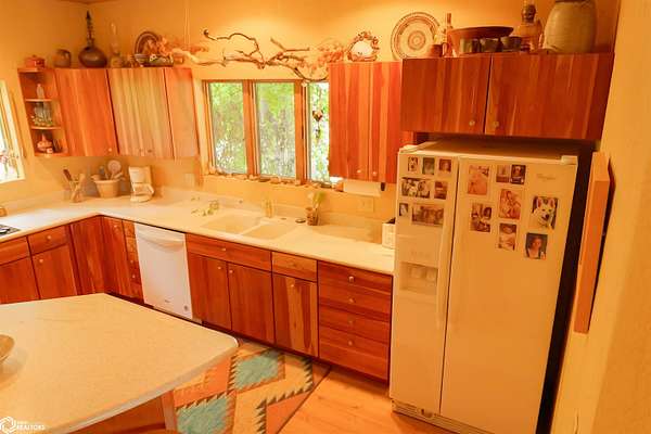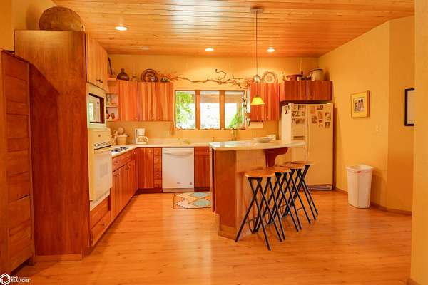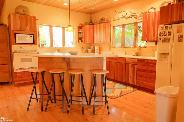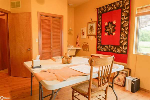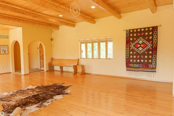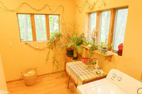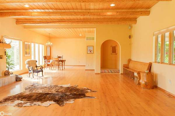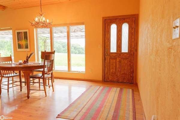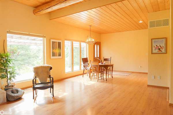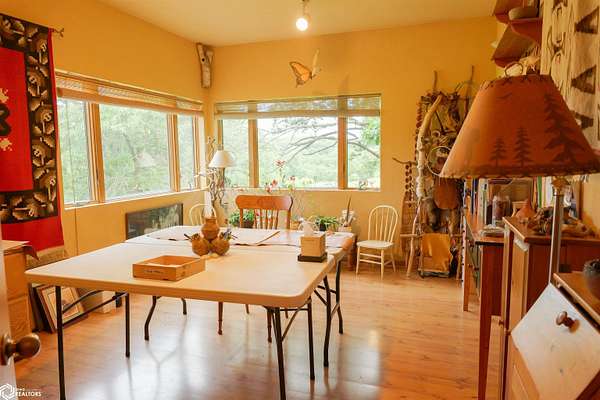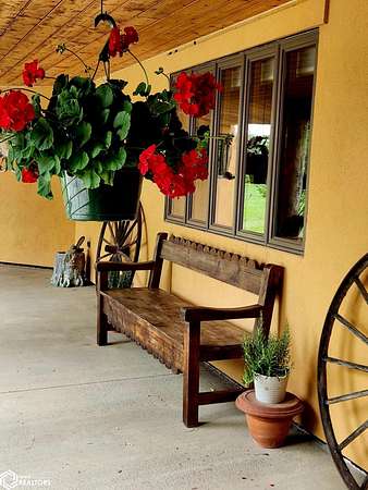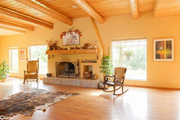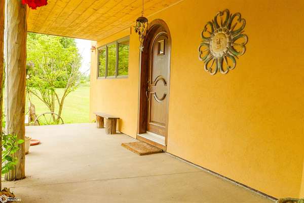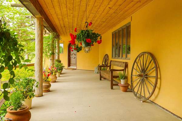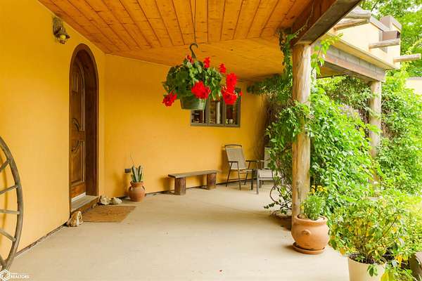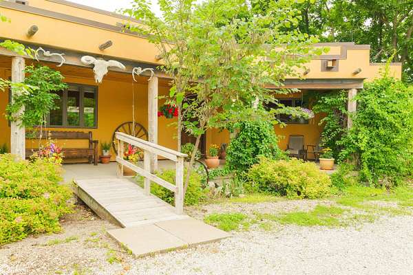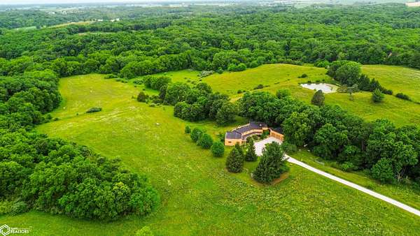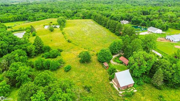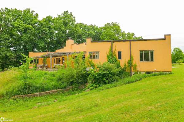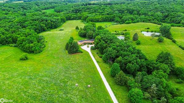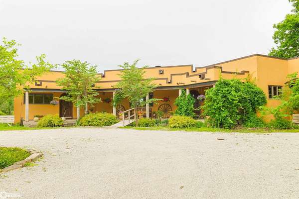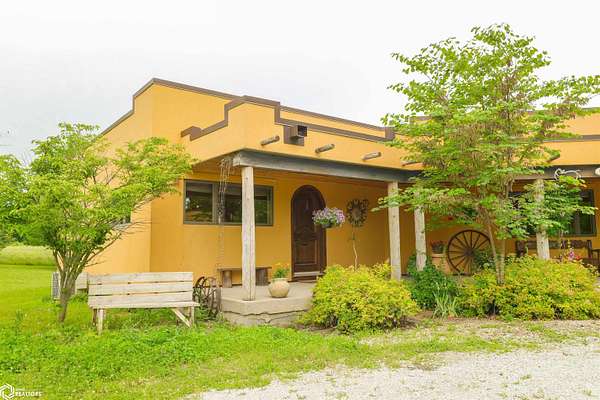 NATURE LOVER'S PARADISE! This magnificent, rustic Santa Fe inspired home, designed by the artist who lived there, is a magical property and rare gem. Nestled at the edge of the woods overlooking ponds, and cradled amongst trees, this is Nature Lover's Paradise! 36.46 ac m/l of which approx. 13ac tillable and the balance in timber and two beautiful meadows with endless potential, hills, woodland forest, ponds, creek and fields, this enchanting property is truly one-of-a-kind. Custom touches throughout the home created by the artist who lived there. Home features 4 Bedrooms and 4 Bathrooms (3 full baths, including 2 ensuites and 1 half-bath) Master Bedroom ensuite Spare Bedroom ensuite Veranda. Also there are 2 non-conforming bedrooms in the basement. Relax after a long day in the custom jacuzzi overlooking the meadow and forest in the master ensuite. Sit out back on the veranda watching the sunset overlooking the woods, and listen to the birds, owls, tree frogs, and cicada, or take in the hummingbirds as you relax on the front porch. Property also includes 20x40 machine shed with electric; 36x38 barn; and an 8x20 corn crib. This Nature Lover's Paradise and Wildlife Haven is truly one-of-a-kind. Call now to schedule a private tour!