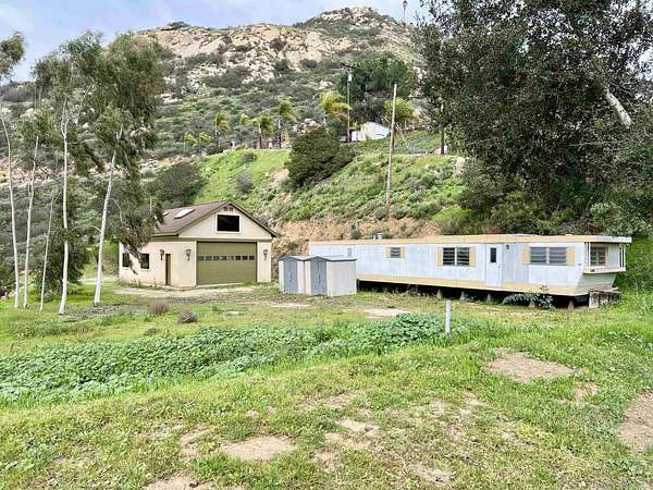 Set among the rolling hills of Valley Center, this unique rural property offers the rare opportunity to own over 35 acres across multiple included parcels, providing space, privacy, and flexibility. The single-story ranch-style home (1,680 sq ft) and detached workshop (960 sq ft) are located on 18 acres with direct frontage along Old Castle Road, offering easy access while still enjoying a peaceful country setting. The home features a comfortable, functional layout filled with natural light. While it would benefit from minor updates and new flooring, it is otherwise move-in ready and offers a solid foundation for a new family to make it their own. The flowing ranch design makes it ideal for everyday living, weekend use, or future customization. A large detached workshop adds additional exciting opportunities. Included is a large trailer, along with two additional smaller detached sheds for extra storage or projects. The property also offers ample room for RV parking, trailers, and recreational vehicles. There are 2 neighboring parcels included in the sale, measuring approximately 6.89 acres with a well and 10.71 acres, both accessed off Pamoosa Lane, for a total of 35+ acres. The land offers open space, rolling terrain, and versatility for agricultural, equestrian, or recreational use. Enjoy sunset views to the west and a constant breeze flowing up the canyon, adding to the comfort and appeal of this peaceful setting. Located near Valley Center amenities yet surrounded by open countryside, this property offers space to breathe and endless possibilities for the next owner.