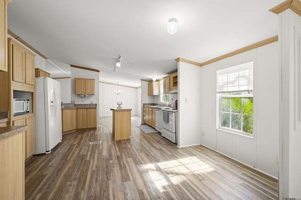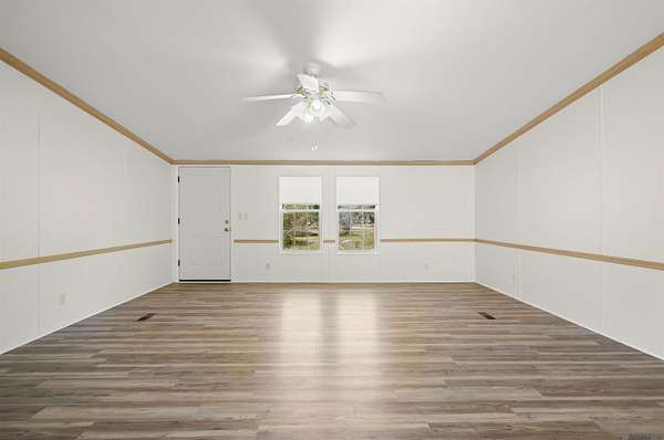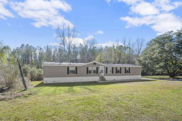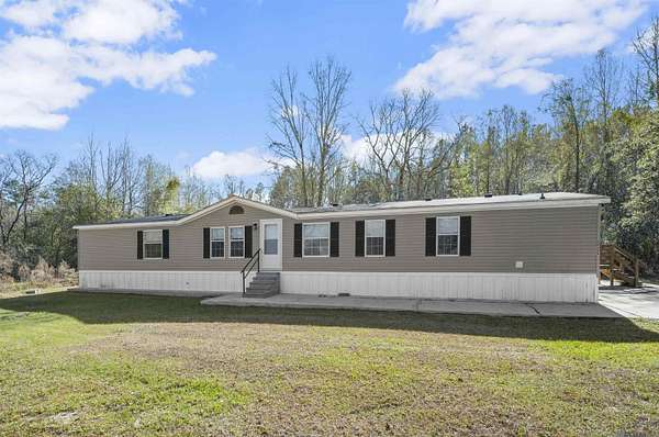FLOOD ZONE X! ALMOST 2 ACRES OF LAND WITH FRUIT PRODUCING TREES!!! Welcome home to this 4 bedroom, 2 bathroom property with an office/flex space attached to the Primary Bedroom. You'll adore the updates done while still maintaining the charm of this 2003 Southern Gem featuring a tasteful blend of gold and black fixtures, beautiful brand new separate soaking tub, walk in closets in every room and double family/living areas. The seasons will bring many different fruits to enjoy such as persimmons, blackberries, huckleberries and satsumas. Home sits on a slab and has never been moved. It's positioned centrally on the beautiful 1.98 acres with huge live oak and fruit trees. AC has been maintained with duct work recently and comes with a limited warranty that good through 05/2029!! Come see this wonderfully kept and updated and home and envision yourself home sweet home today!