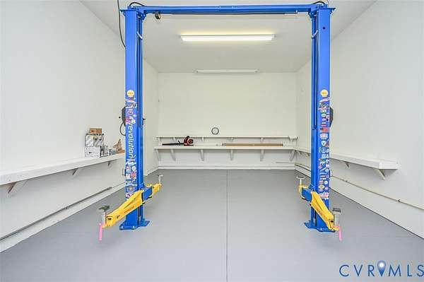 Sitting on 5 beautiful acres with the possibility of being subdivided OR space to build your dream home. Just minutes from Downtown Richmond, this property offers a convenient location for dining at restaurants and access to Osborne Boat Landing. The MOVE-IN READY living space features 1800 Square Feet with a spacious dining area in the kitchen which also features durable Vinyl Plank Flooring, ALL Appliances, Granite Counters, Lazy Susan corner cupboards, and pantry. Adjacent to the kitchen is a utility room equipped with a washer, dryer, chest freezer, utility sink and half bath. The Bedroom is spacious and features a walk-in closet and adjoining full bathroom with double vanities, separate tub and shower. Throughout the living space, NEW carpet and FRESH Paint have been applied. The 3600 SF conditioned garage has an RV Bay featuring a 10,000 lb lift, plus three bays able to accommodate 9 vehicles, and includes an EV charging outlet, a TV, surround sound system, mini refrigerator, freezer, Fresh paint on the walls, NEW Epoxy floor finish and More! Suitable as an entertainment space for a pool table, ping pong or game tables. Securely store your cars, trucks, RVs, boats and tools! So much potential for this property-Imagine horses, chickens, goats, garden and the possibility of living on the property while Supervising the construction of your future dream home. The exterior boasts an 8' x 16' Shed, gutter guards, a whole house Generac generator with a 500 Gallon propane tank that conveys with the property, security cameras and video doorbell in place. Alternative Septic System recently inspected. Excellent maintenance and pride of ownership shows throughout with upgrades, features and options too numerous to list.