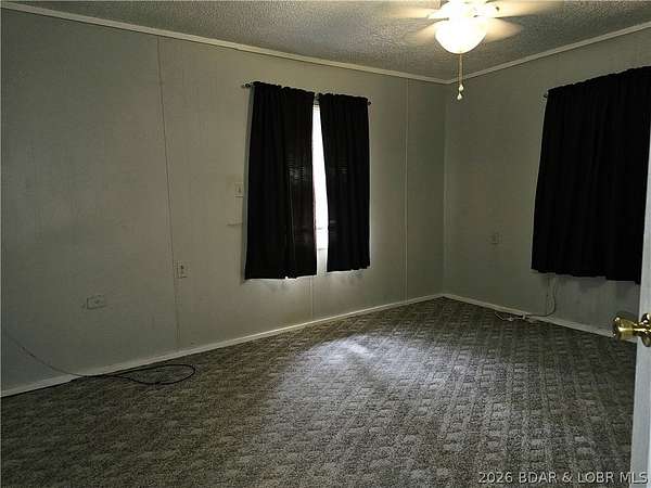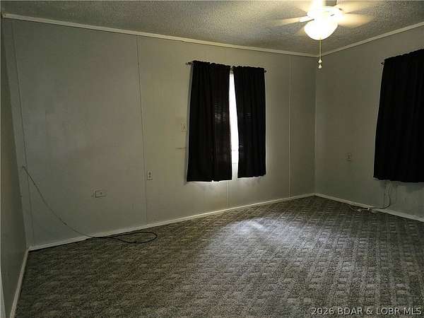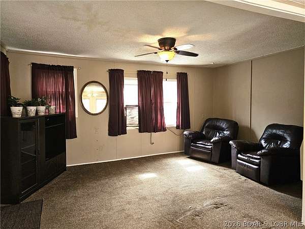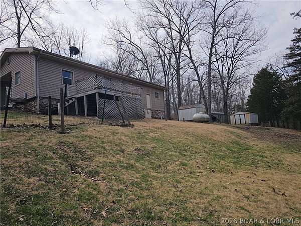Enjoy quiet country living in this cozy 2-bedroom single-wide located in a private neighborhood. The property includes 7 lots totaling approximately 2+/- acres, offering plenty of space to build a shop, garage, or even an additional home. The land features road frontage on both the front and back of the property, providing excellent accessibility and future development potential. Owned by the same owner since 1991, the home offers a large back deck, carport, and two storage sheds, along with private well and septic.Located in the charming Town 'n Country community, residents enjoy access to a private 27-acre spring-fed lake, supplied by an artesian well installed in the 1960s. The lake is known for its deep, clean, clear water and excellent fishing, including record-size catches. A boat launch area is available for residents. Conveniently situated between Jefferson City and Lake of the Ozarks, this property is just 3 miles from Eldon and 9 miles from Osage Beach, making it ideal as a full-time residence, weekend getaway, or investment opportunity. Perfect for relaxing, fishing, and entertaining family and friends.