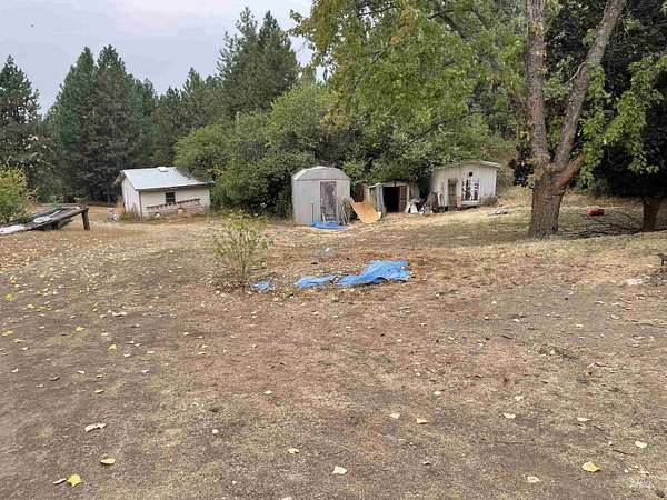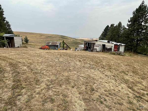 Bring your ideas with you to this diamond in the rough! 2688 sq.Ft, 5 bedrooms and 3 baths and just over 5 acres with multiple outbuildings and only a few minute drive to Moscow! 3 bedrooms and 2 baths on the main floor and 2 more bedrooms and 1 bath along with a second kitchen in the full, walk out basement. Enhance the already great views by doing some selective tree trimming. Opportunity awaits! Fix up the house and live in it or live in it while you build your dream home on the western portion of property. There are several storage sheds along with a small shop and a larger machine shed for storage, parking and projects.