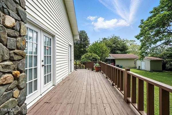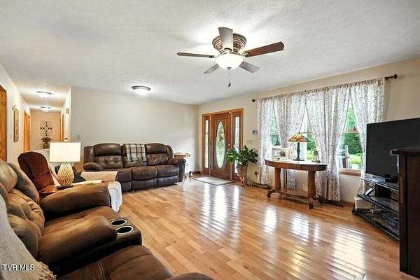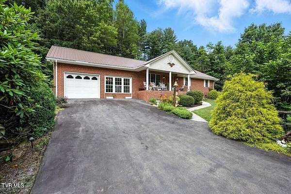 Tucked into the mountains on just over 7 private acres, this one of a kind property offers a rare combination of usable land, water features, and flexibility. A peaceful creek winds through the property and feeds into a serene lily pond, creating a setting that feels like a private nature retreat. The area surrounding the home is level and usable, ideal for everyday living, outdoor enjoyment, or entertaining. The upper portion of the property is wooded and rises gently, offering beautiful mountain views and potential for an additional building site for a guest house, second dwelling, or multi generational living setup, subject to buyer verification. The custom built home features nearly 2,000 square feet of finished living space, all on one level. Inside, there are two separate living areas, providing flexibility for extended family, home office space, recreation, or private guest quarters. Hardwood and tile flooring, an eat in kitchen with island, and a functional layout make the home both comfortable and practical. Exterior features include a two car carport for daily parking, along with a large outbuilding that provides covered RV parking and versatile space suitable for storage, workshop use, animals, or creative projects. Located just minutes from town amenities and Watauga Lake, this property offers the quiet and privacy East Tennessee is known for while remaining convenient to shopping, dining, and recreation. The attached garage was converted to the bonus room but still has storage for lawn equipment. Buyer and buyer's agent to verify all information, including but not limited to acreage, zoning, building potential, utilities, and intended use, and to conduct their own due diligence. Information deemed reliable but not guaranteed.