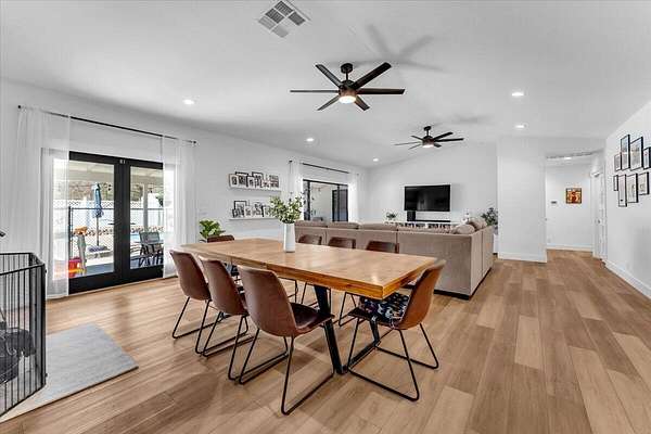 Enjoy outdoor living with a covered back patio, pool with fountain and new equipment, vinyl-fenced backyard, lush irrigated acreage, and a large garden with greenhouse. The property also features a 4-car garage with shop extension, RV hookup, new septic system, and a concrete slab ready for your future outbuilding or animals.