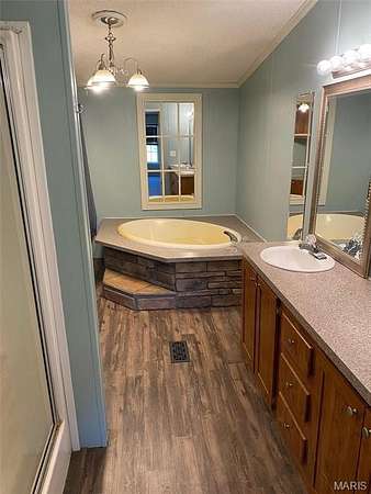From Hwy 60/67 junction north of Poplar Bluff go 1 mile on 60 West to Fluechville and make left on to paved outer road. Driveway to MH is first turn on right. Property can also be accessed off of CR 423 as well.