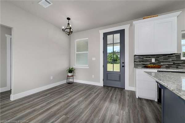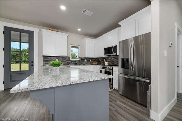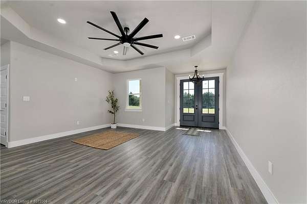 Step inside this gorgeous French Country Craftsman Style home. Amazing Floor plan. Beautiful double 9 ft front doors, 3 Bedroom / 2 bath. Open airy /concept, 9' ceilings and 8' doors. Kitchen island. Great light with lots of windows. Gorgeous Custom wood cabinets'. Large walk-in master closest, soaking tub and a walk- in shower. Real wood cabinet's thru out bathrooms. Great laundry room with Cabinets' and kitchen pantry. Large Front and back covered porches. Sits on a beautiful 4.61 Acres. Paved road. Over size garage. Beautiful hill and scenic views. And just 7 minutes to town , From Sallisaw North on 59 HWY and then east 3 miles on 101 HWY turn North on 4650 RD 1/4 mile on the left . By appointment only.