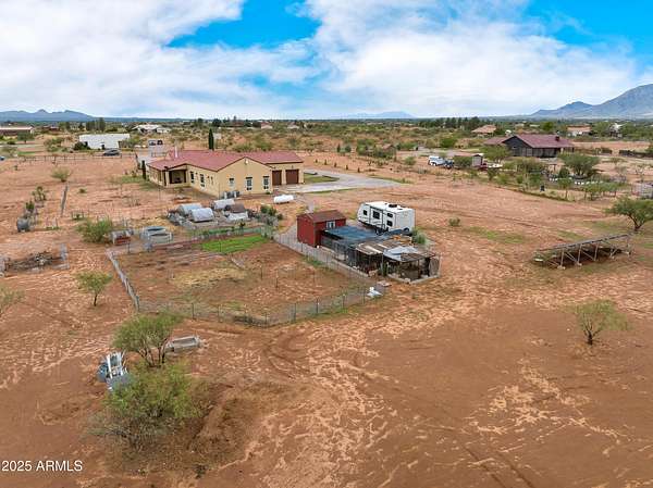 VA Assumable loan at 2.75%! Prepper's Paradise! Welcome to your own private retreat in the heart of Hereford! This stunning single-family home sits on 4 fully fenced acres with breathtaking mountain views (can be used as a horse property) is equipped with a bunch of safety-related add-ons that most preppers desire for their home and a lifestyle centered around comfort, and functionality. Featuring 4 bedrooms plus a spacious den, this open-concept home boasts exposed wood beams, rich Saltillo tile flooring, and a chef's kitchen with granite countertops, a custom center island, walk-in pantry and warm wood cabinetry that makes entertaining a joy. Natural light flows through the large windows, highlighting the character and charm throughout. This property is packed with features designed for sustainable living, including owned solar panels, a private well, chicken coops, raised garden beds and energy-efficient upgrades like brand-new insulation in the master suite area. There's no HOA, so you can truly make this land your own. Bring your animals, build a workshop, or just enjoy the peace and privacy of wide-open desert skies. Located in desirable Hereford, you'll enjoy a quiet, rural feel while still being just a short drive from town conveniences, schools, and shopping. Home Improvements: * EMP Shield (protects the entire homes electrical system from lightning strikes, solar flares, power surges and of course electromagnetic pulses (EMP). * A state-of-the-art Solar Power System that was installed in Oct 2023. * The home is equipped with an emergency battery back-up system. * The battery back-up covers the well, refrigerators, one bathroom, a few outlets in the kitchen and one smaller bedroom. Emergency power back-up system installed. * The new owner must provide their own 9K+ watt generator to connect to the home. * Owned 500-gallon propane tank that can provide at least two years of propane. * SimpliSafe Home Security System installed (maybe able to transfer) if desired. * Installed a wood stove in the living room that heats up most of the house when the ceiling fans are circulating. * There is at least 3 years' worth of firewood already cut and stacked on the property. * New energy efficient windows with UV protections throughout. Installed in Feb 2023. * Added a wood ceiling and insulation in the Arizona/sunroom which makes a perfect hydroponics room with all the natural light. * The exterior of the house was painted in June 2025. * Installed a 30 AMP RV electrical connection on the side of the house. * Insulated the attic above the garage so vegetables and herbs could be grown inside during the winter months. * The new owner must provide their own grow lights and planter racks. The garage has been used for hydroponics too. * All raised flower beds are filled with organic soil. No pesticides are used in our gardens only natural products like diatomaceous earth. * Ran power and installed security lights in the backyard and on three sides of the shed. Also added GFCI outlets inside and outside the shed. * Added 3 peaches, 2 plums, 2 pears, 2 cherries, 3 pomegranates, and 6 apple trees. * Added 2 blueberry bushes and 6 grape plants. * Added RV power connection. * Added generator backup connection. The well, fridge, part of the kitchen, spare bedroom, and one bathroom will all run off a generator. * Installed landscaping lights around the driveway. * Replaced windows throughout the house. * Installed new blinds throughout the house. * Installed a large wood stove in the living room. * Installed a SimpliSafe security system. * Installed a new dishwasher. * Installed new sink faucets in the kitchen, laundry room, and bathroom. * Added chicken coop and a large chicken run. * Added gravel RV parking area and gravel walkway to the shed and garden. * Added four concrete block raised bed gardens 10x10 each with 65% UV rays blocking technology. All organic dirt and compost added to the raised beds. * Fenced in part of the yard on the sid