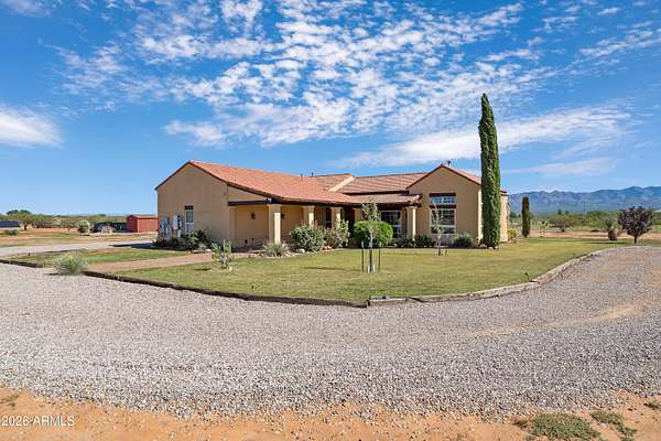 THIS IS IT! $5,000 CREDIT TO BUYER'S COSTS! VA Assumable loan at 2.75%! Prepper's Paradise! Welcome to your own private retreat in the heart of Hereford! This stunning single-family home sits on 4 fully fenced acres with breathtaking mountain views (can be used as a horse property) is equipped with a bunch of safety-related add-ons that most preppers desire for their home and a lifestyle centered around comfort, and functionality. Featuring 4 bedrooms plus a spacious den, this open-concept home boasts exposed wood beams, rich Saltillo tile flooring, and a chef's kitchen with granite countertops, a custom center island, walk-in pantry and warm wood cabinetry that makes entertaining a joy. Natural light flows through the large windows, highlighting the character and charm throughout. This property is packed with features designed for sustainable living, including owned solar panels, a private well, chicken coops, raised garden beds and energy-efficient upgrades like brand-new insulation in the master suite area. There's no HOA, so you can truly make this land your own. Bring your animals, build a workshop, or just enjoy the peace and privacy of wide-open desert skies. Located in desirable Hereford, you'll enjoy a quiet, rural feel while still being just a short drive from town conveniences, schools, and shopping. Home Improvements: * EMP Shield (protects the entire homes electrical system from lightning strikes, solar flares, power surges and of course electromagnetic pulses (EMP). * A state-of-the-art Solar Power System that was installed in Oct 2023. * The home is equipped with an emergency battery back-up system. * The battery back-up covers the well, refrigerators, one bathroom, a few outlets in the kitchen and one smaller bedroom. Emergency power back-up system installed. * The new owner must provide their own 9K+ watt generator to connect to the home. * Owned 500-gallon propane tank that can provide at least two years of propane. * SimpliSafe Home Security System installed (maybe able to transfer) if desired. * Installed a wood stove in the living room that heats up most of the house when the ceiling fans are circulating. * There is at least 3 years' worth of firewood already cut and stacked on the property. * New energy efficient windows with UV protections throughout. Installed in Feb 2023. * Added a wood ceiling and insulation in the Arizona/sunroom which makes a perfect hydroponics room with all the natural light. * The exterior of the house was painted in June 2025. * Installed a 30 AMP RV electrical connection on the side of the house. * Insulated the attic above the garage so vegetables and herbs could be grown inside during the winter months. * The new owner must provide their own grow lights and planter racks. The garage has been used for hydroponics too. * All raised flower beds are filled with organic soil. No pesticides are used in our gardens only natural products like diatomaceous earth. * Ran power and installed security lights in the backyard and on three sides of the shed. Also added GFCI outlets inside and outside the shed. * Added 3 peaches, 2 plums, 2 pears, 2 cherries, 3 pomegranates, and 6 apple trees. * Added 2 blueberry bushes and 6 grape plants. * Added RV power connection. * Added generator backup connection. The well, fridge, part of the kitchen, spare bedroom, and one bathroom will all run off a generator. * Installed landscaping lights around the driveway. * Replaced windows throughout the house. * Installed new blinds throughout the house. * Installed a large wood stove in the living room. * Installed a SimpliSafe security system. * Installed a new dishwasher. * Installed new sink faucets in the kitchen, laundry room, and bathroom. * Added chicken coop and a large chicken run. * Added gravel RV parking area and gravel walkway to the shed and garden. * Added four concrete block raised bed gardens 10x10 each with 65% UV rays blocking technology. All organic dirt and compost added to the raised b