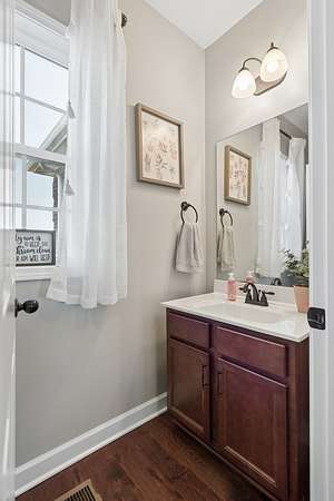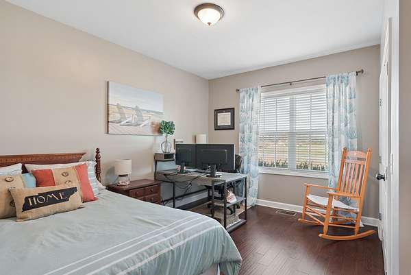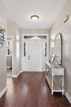 Inside, you’ll find three spacious bedrooms and 2.5 baths. Laminate hardwood flooring runs throughout the main living areas, creating a warm, inviting feel from the moment you walk in.