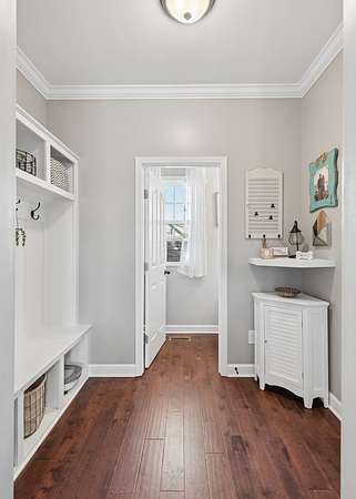 You’ll also love the oversized laundry room with custom shelving and the spacious two-car garage.