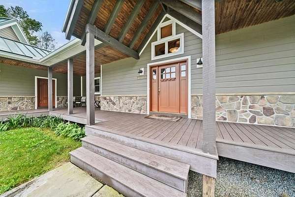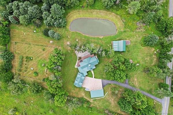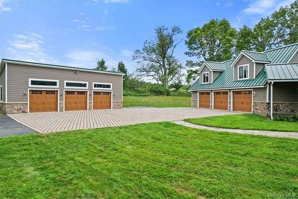 This Contemporary Mountain Lodge offers the perfect blend of luxury and rustic charm. Step into this grand living space with cathedral ceilings, floor to ceiling windows and a stunning two-sided fieldstone fireplace. The gourmet kitchen features top-of-the-line appliances, custom hickory cabinets, black marble countertops and a walk-in pantry. Enjoy the convenience of a large mudroom, a 3 bay heated attached garage with a dog bath for your furry friends. An expansive finished room over the attached garage provides endless opportunities for housing guests in "bunk room" fashion, or as a large game/media room for entertaining. Need more garage space, no problem, because the property also has a detached 3 bay heated garage. The attached and detached garages are both equipped with 220 Volt outlets for EV charging stations and special LED lighting to highlight your many vehicles. Experience ultimate comfort with Geothermal radiant heated hardwood floors and a 30KW Generac generator ensuring your home is always powered. Relax on the 60 ft wrap-around Timbertech deck or at the stocked fishing pond. Spend your nights on the back flagstone patio around the built in fire pit with family and friends. This 56 acre estate includes a .25 acre 9 ft. fenced area for gardening with a small orchard of apple and pear trees. Property boasts approximately 10 acres of 9 ft. fenced-in land suitable for livestock. Light Sport Aircraft, Horse and livestock friendly land. EQUIPMENT THAT CONVEYS WITH THE PROPERTY: Polaris Ranger, Kubota ZD323 Zero Turn Additional Information: Amenities: Storage, Parking Features: 3 Car Attached, 3 Car Detached