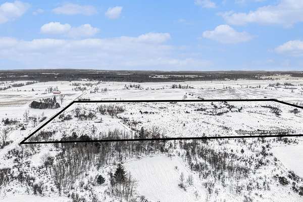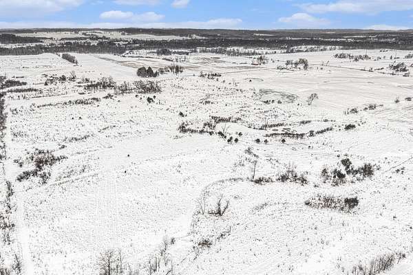 Spanning approximately 59 acres along S Deer Lake Road, this property represents a substantial landholding defined by scale, frontage, and open terrain. With approximately 1,321 feet of frontage along a public road and extending nearly 2,000 feet in depth, the property offers a broad footprint with room to appreciate the land's full dimension. The acreage is predominantly open with scattered tree lines and pockets of natural growth throughout, creating visual depth across the landscape. Subtle elevation variation across the parcel contributes to natural contour while maintaining a generally usable topography. An existing water feature or low-lying area is present on the property, adding character and distinction to the setting. Electric service is available at the road. An existing structure is located on the property; condition and usability are unknown. The property is within the Reed City School District. Boundaries are shown for reference.