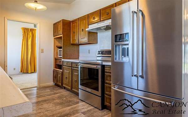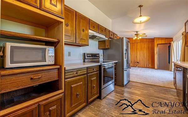 This property features a classic brick home on a rim lot with sweeping mountain views, paired with an adjoining vacant rim lot--all just 5 minutes from downtown. The home offers 4 bedrooms and 3 bathrooms--two bedrooms and two bathrooms on the main level, plus two additional bedrooms and one bathroom in the basement. A cozy sunroom and inviting porch extend the living space, while mature trees create a quiet country feel with town conveniences still nearby. Inside, the floorplan invites creativity--remodel to your taste or reconfigure into two separate living spaces, creating the option for dual rentals. Next door, the vacant lot is an excellent building site. Horses are welcome, and no covenants allow flexibility for future use. This property balances lifestyle and opportunity. Live comfortably, invest for income, or do both while enjoying easy access to the Bighorn Mountains, Yellowtail Reservoir, and Yellowstone National Park for year-round recreation.