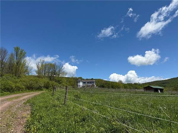Beautiful land in Bovina with views - house site at end of long driveway with septic and well and foundation that could be repurposed for a new build. A former horse farm with stables and fenced pastures, a pond and beautiful views of rolling hills in the distance. A truly unique property! This is an estate sale and being sold "as is".