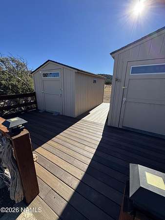Discover an unfinished gem on a corner lot, boasting breathtaking mountain views! Situated just off a maintained road, this delightful cabin is nestled on 15 acres, waiting for your personal touch. It features solar power, hauled water, community electricity access, a gray water septic system, a 20 ft conex box, three sheds, and spacious Trex decking, both covered and uncovered. This quaint property offers the potential to be your ideal weekend getaway or a cozy home sweet home. It's easy to show, so don't hesitate to call us today for a private tour!