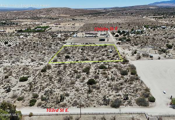 APN: 3047-016-046Coordinates: 34.486167, -117.9431942.5 acres for sale in LA County. This lot is located near the intersection of 103rd St E and Fort Tejon Rd in the Pearblossom area. Excellent location just off of the main highway and near to other home. Build a custom house in this beautiful area with mountain and valley views.