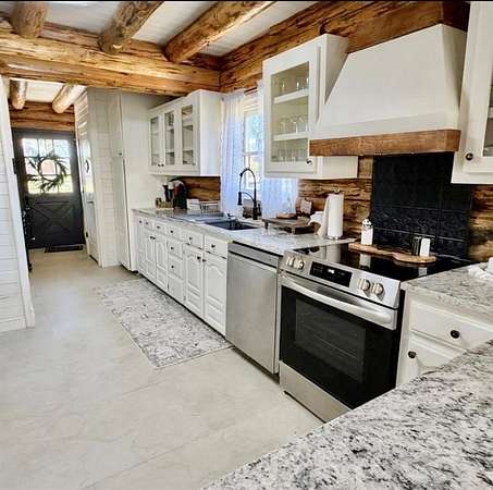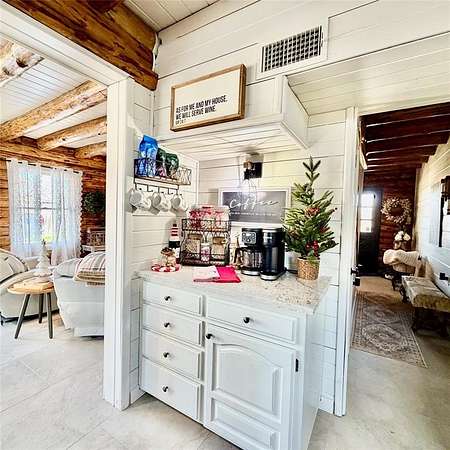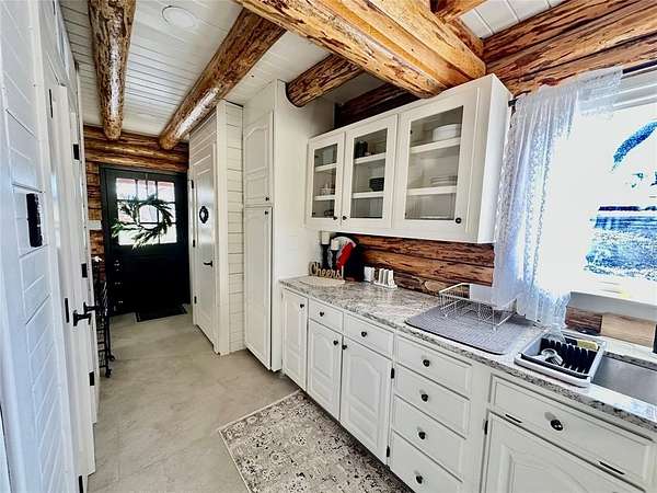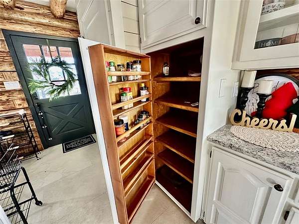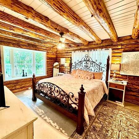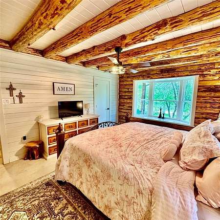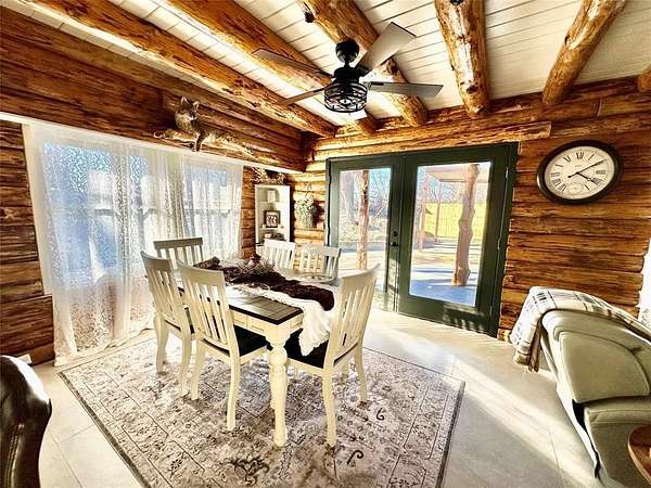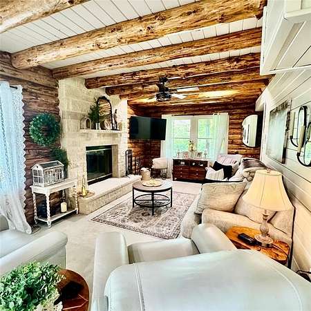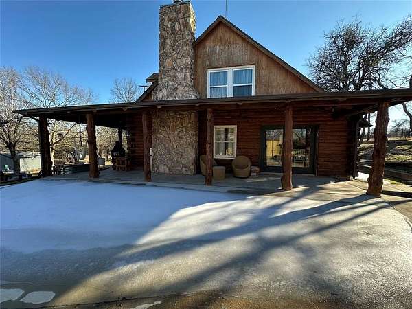 Drive through the private gate into your luxury oasis of comfort, peacefulness and timeless design. Beautifully renovated, 3bdrm 2.5 bathrms, unique log home boasts high end attributes. Rustic character meets modern style. From the moment you arrive, you'll be drawn to the peaceful atmosphere, expansive porches; perfect for morning coffee, relaxing evenings, and entertaining guests. You have plenty of room to lounge & enjoy the tranquil outdoor setting. Inside, the shiplap wood walls along with stunning exposed logs create a cozy, inviting atmosphere throughout. The spacious living area is anchored by a gorgeous stone fireplace and flows effortlessly into the bright, open kitchen featuring crisp white cabinetry, abundant granite counters, breakfast bar and beverage space ideal for gathering. Wonderful dining area with double glass doors opening to a grand covered porch. Natural light pours in through the home, highlighting unique textures and custom finishes. Retreat to the serene, downstairs primary bedroom adorned with a bay window seat, providing a relaxing feel, complemented by an en-suite spa-like bathroom. A blend of farmhouse elegance and cabin warmth make every room feel cozy. Stunning tile and real wood floors throughout. This one-of-a-kind property offers the perfect combination of comfort, character, and curb appeal, ready to welcome you home. All 3 bedrooms are oversized with room for sitting areas in each. No known restrictions. No HOA. No city taxes. Bring your livestock to enjoy the 3+ac, with perfect area for arena with sandy soil in place, fully fenced, cross fenced and 3 stall shed row barn, plus equine vet and farrier live next door. Plenty of parking. Also has a quaint shop for all your projects! Nestled in Peaster ISD and just 10 minutes from downtown Weatherford.