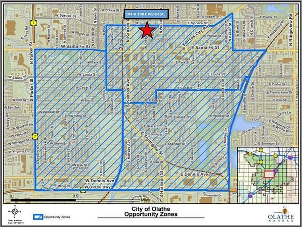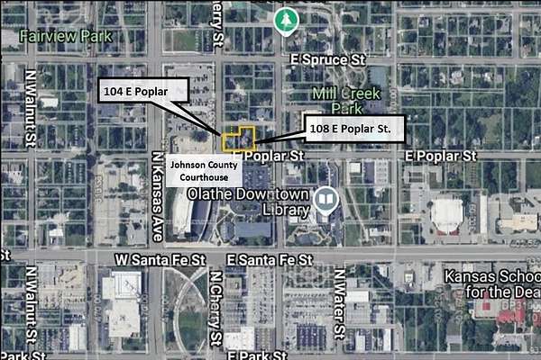 From the I-35 & Santa Fe Street exit go West to Chestnut Street in downtown Olathe, Ks or from the 7 Highway & Santa Fe Street intersection go East to Chestnut Street in downtown Olathe, Ks. Turn North on Chestnut Street and go one block to Poplar Street. Go West on Poplar Street to 108 and 104 E. Poplar. The two homes will be on your right and directly across the street from the new Johnson County Courthouse. There is alley-way access from both Chestnut Street and Cherry Street to paved, off-street parking behind the 108 property. This parking is private and is included with this property package.