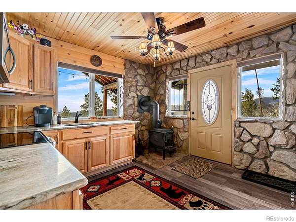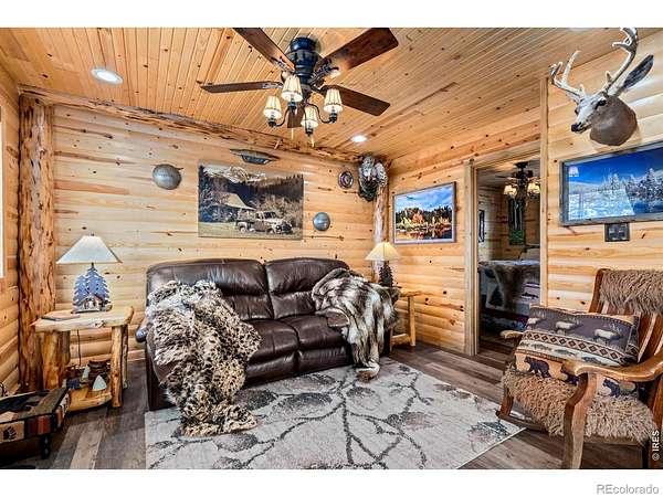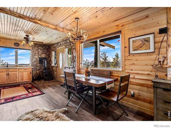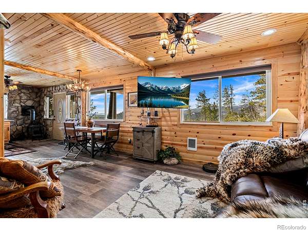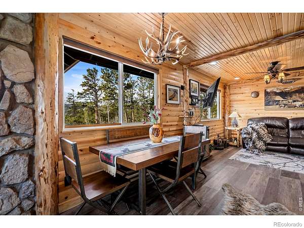 The mountains are calling!! Welcome to 104 Atakapa Ct. Nestled off the end of the road and overlooking Beaver Meadows to the South, this updated 2 bed 1 bath cabin on 3.53 acres has got it all. The lot is simultaneously beautifully forested while also open for ample parking and/or play areas and boasts some truly incredible views. The cabin interior is both fully updated and beautifully and meticulously finished in knotty pine making it the warm and rustic retreat we all crave. For the city-dweller in some of us there are also a plethora of added necessities: lovely kitchen, heated bathroom floor, a well for water, a newer septic system with leach field, electric heat, double pane windows, separate laundry room with washer and dryer, and beautiful lighting. The wood stove is a great bonus for an additional or backup heat source on those extra cold days. The cabin exterior (freshly repainted February 2026) has two large and covered patios; one on the East side and one on the West. The covered and Trex-decked East patio's expansive views overlook the forest, snow-capped ranges and the darling little rustic tree house. The covered and concrete-floored West patio provides additional and ample outdoor space for BBQ's, games, relaxing, or can also serve as covered parking. To top it all off behind the cabin is a large storage shed to keep your toys and tools safe. Answer the call, schedule your showing today!!