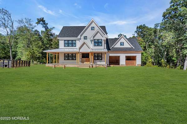 This breathtaking new construction redefines modern farmhouse living with over 6,000 square feet of finished space, including a beautifully finished 1,110-square-foot attic. Every inch is thoughtfully designed, blending timeless craftsmanship with today's most desired finishes. From the moment you arrive, the curb appeal captivates-cedar accents, architectural soffits, and stately porch columns set the tone for the elegance within. Step through the grand foyer, where soaring ceilings and an open layout create an immediate sense of space and sophistication. To one side, a den with custom built-ins provides the perfect office or reading nook, while the formal dining room is designed for memorable gatherings. A chic powder room and a mudroom enhance everyday convenience. At the heart of the home, the chef's kitchen is a true showpiece. A sprawling island with seating anchors the space, surrounded by sleek finishes and top-of-the-line appliances. The kitchen flows seamlessly into the great room, where floor-to-ceiling glass sliders flood the interior with natural light and open to a covered porch and an elevated deck creating the ultimate indoor-outdoor living experience for year-round enjoyment. Upstairs, a versatile bonus den over the garage offers endless possibilities ideal for a media lounge, playroom, or second office. Three secondary bedrooms include a stylish Jack-and-Jill suite, while the primary retreat is pure indulgence: a massive walk-in closet with its own island, a spa-inspired bathroom with designer finishes, and a private sitting area perfect for morning coffee or evening relaxation. A second-floor laundry room adds everyday functionality and ease. Set on 1.75 acres, this home combines modern elegance with functional luxury. Designer details are found throughoutfrom black interior doors with brushed gold hardware to architectural accents that elevate every space. Located close to Route 33, NJ Turnpike access, Interstate 195, the Garden State Parkway, and Millstone Township's highly regarded schools, this one-of-a-kind residence is more than a home it's a lifestyle defined by sophistication, convenience, and the peaceful beauty of Millstone.