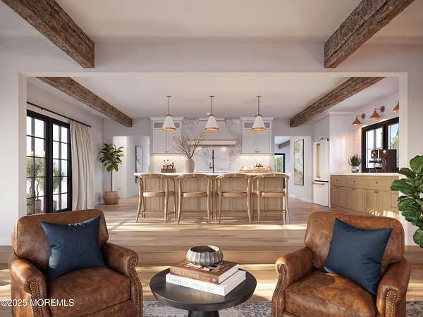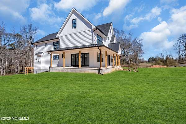 This breathtaking new construction redefines modern farmhouse living, offering over 6,000 square feet of beautifully finished space. Thoughtfully designed throughout, the home blends timeless craftsmanship with today's most sought-after finishes, beginning with striking curb appeal featuring cedar accents, architectural soffits, and stately porch columns. A grand foyer welcomes you into a light-filled, open layout. A private den with custom built-ins and a formal dining room create the perfect balance of comfort and entertaining, complemented by a chic powder room and functional mudroom. At the heart of the home, the chef-inspired kitchen impresses with a large center island, premium appliances, and seamless flow into the great room. Expansive floor-to-ceiling sliders lead to a covered porch and elevated deck, offering effortless indoor-outdoor living. Upstairs, a versatile bonus den provides additional flexible space, while three generously sized bedrooms include a Jack-and-Jill suite. The primary retreat is a true sanctuary, featuring a spacious walk-in closet with center island, a spa-like bath with designer finishes, and a private sitting area. A second-floor laundry room adds everyday convenience. Set on 1.75 acres, this home is rich in elevated details, from black interior doors with brushed gold hardware to carefully curated architectural elements throughout. Ideally located near Route 33, the NJ Turnpike, I-195, and the Garden State Parkway, and within Millstone Township's highly regarded school district, this exceptional residence offers the perfect blend of luxury, privacy, and accessibility. Not one to miss!